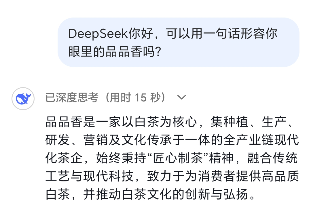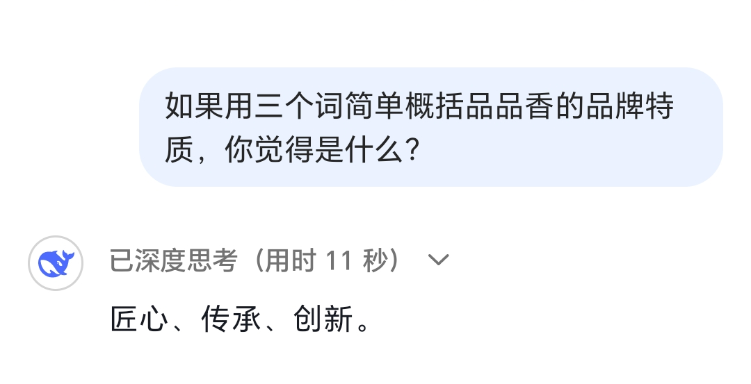 先用一句话形容DeepSeek眼中的品品香: