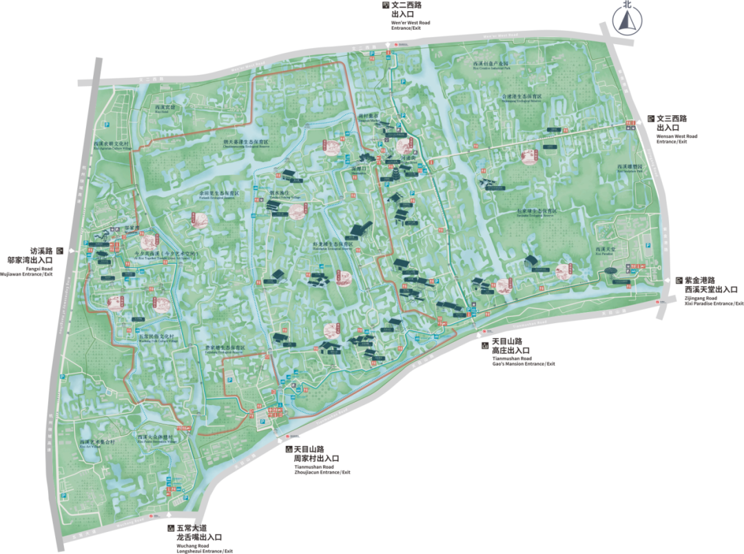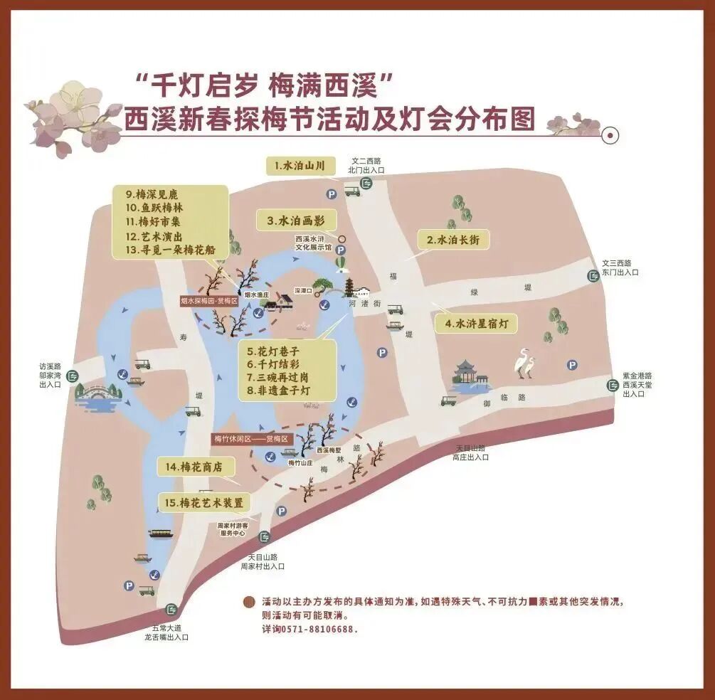 游玩地点:西溪湿地北门、蒋村慢生活街区、杭州西溪水浒文化展示馆区域、河渚街区域