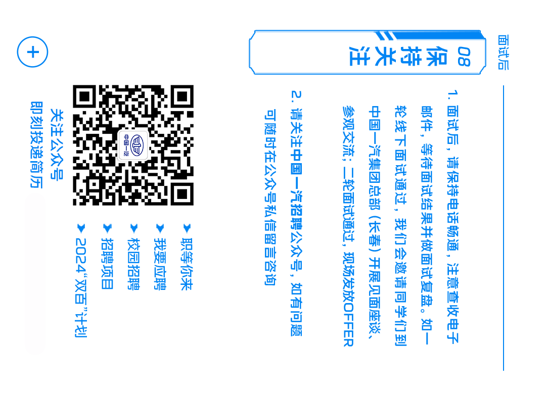 文章内容来源于公众号:中国一汽招聘,点此可查看原文,内容版权归相关企业所有,本网站仅供交流学习。若涉及版权问题或存在侵权情况,请及时与我们联系,我们将第一时间进行删除处理。