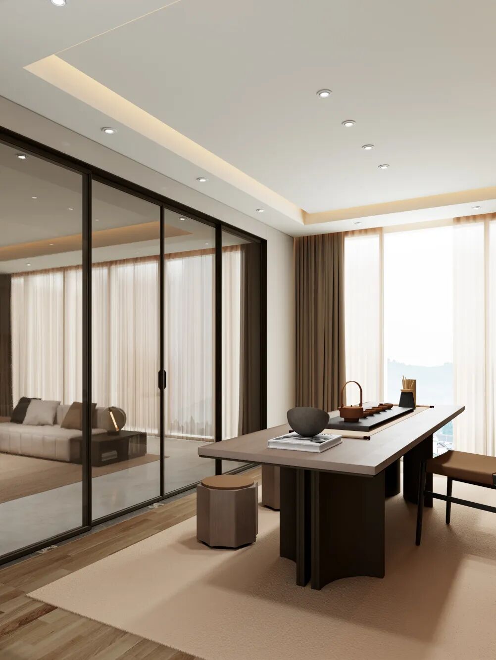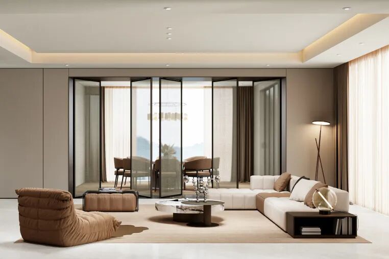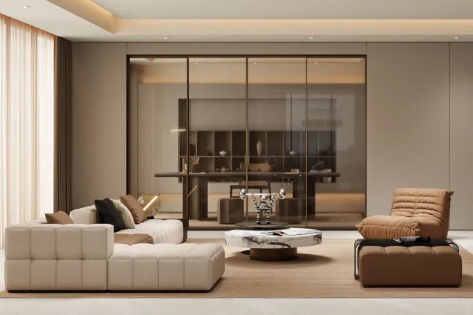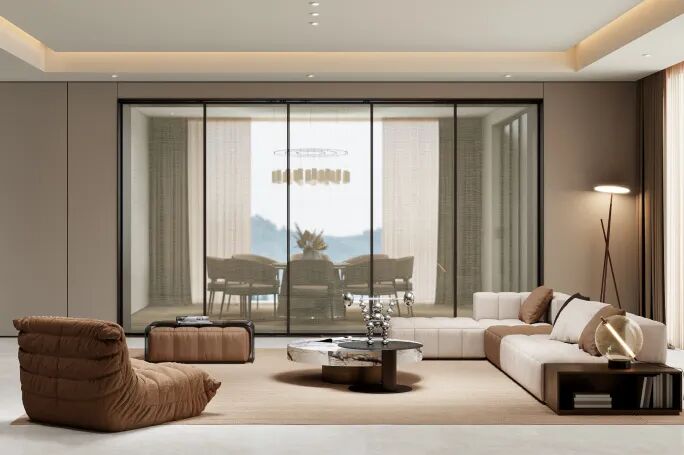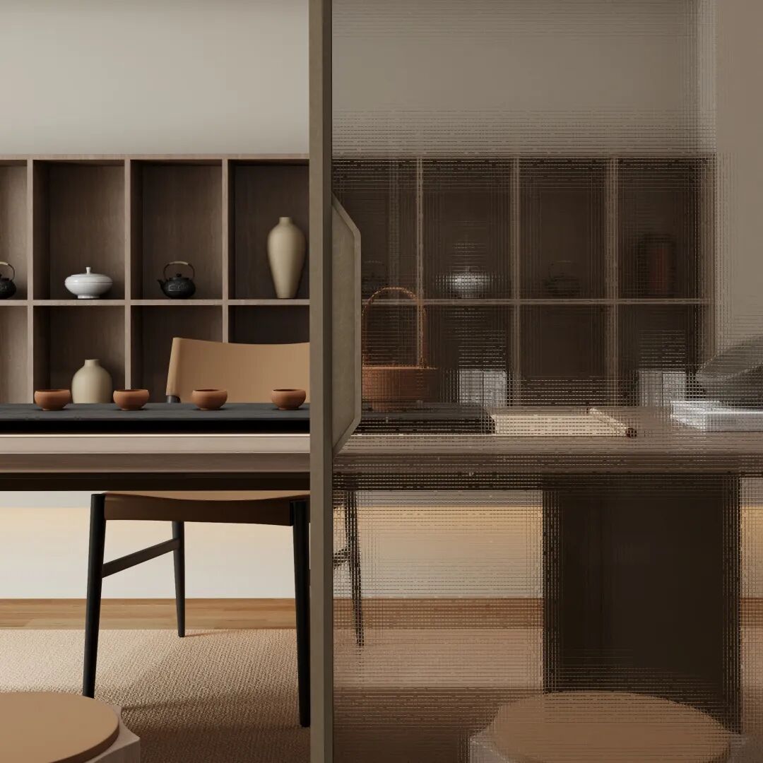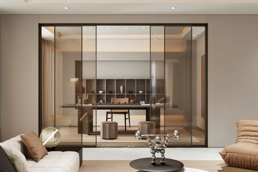 型材(柔光卡奇棕)| 玻璃(香梨夹丝压花)