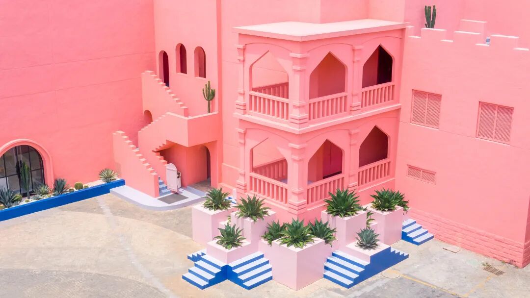 粉色的地学博物馆和迷宫交相辉映