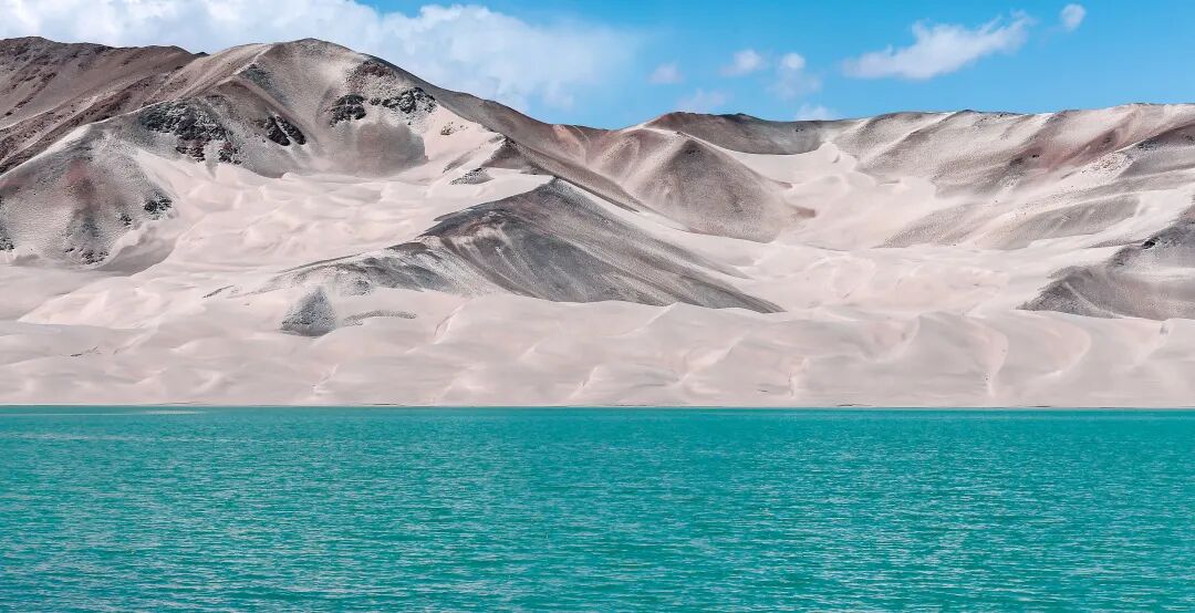 ”帕米尔高原上这个被银色沙丘环绕的小湖