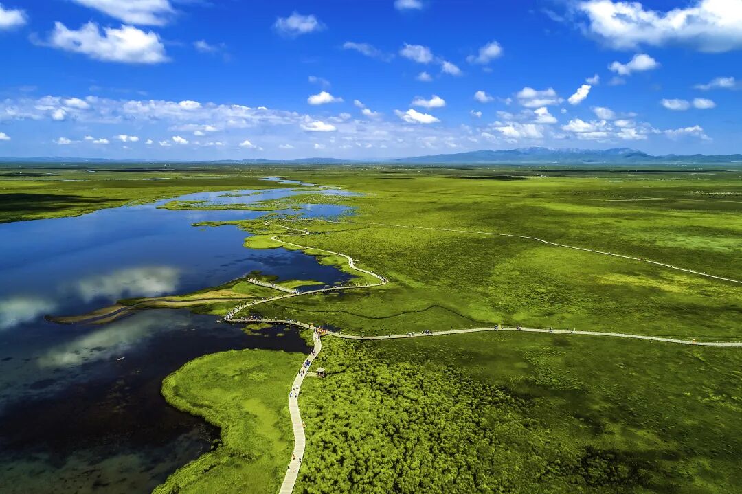 中国最美湿地,大草原的天然湖畔充满了生命力,纯蓝的湖水在夏季被满湖高原芦苇染成绿色,因时而焕发出自己不同的风格。门票60元/人。