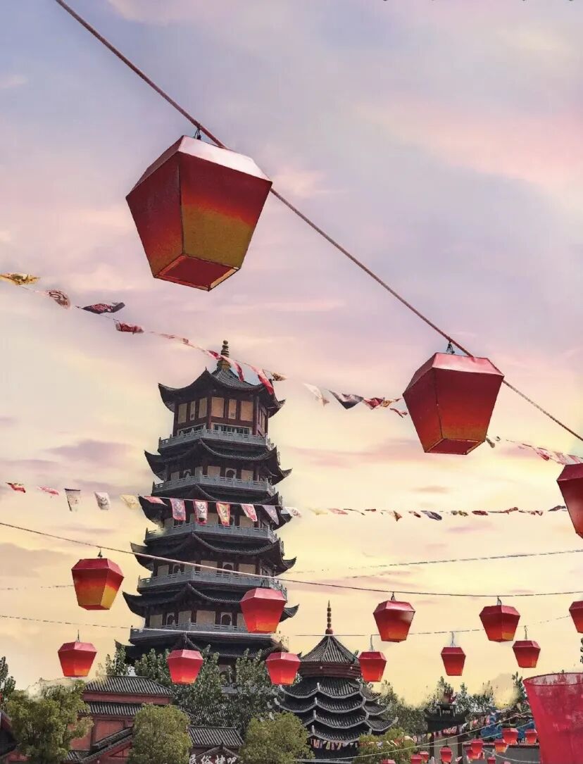 身穿汉服,轻撑油纸伞,放下河灯许愿,