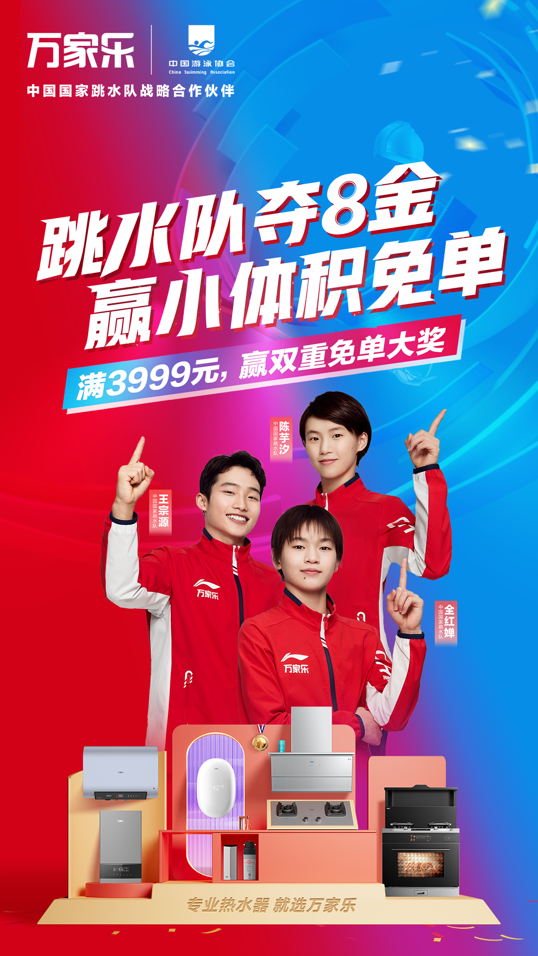 万家乐「跳水队夺8金,赢小体积免单」活动火热进行中,奖品数量有限,先到先得。