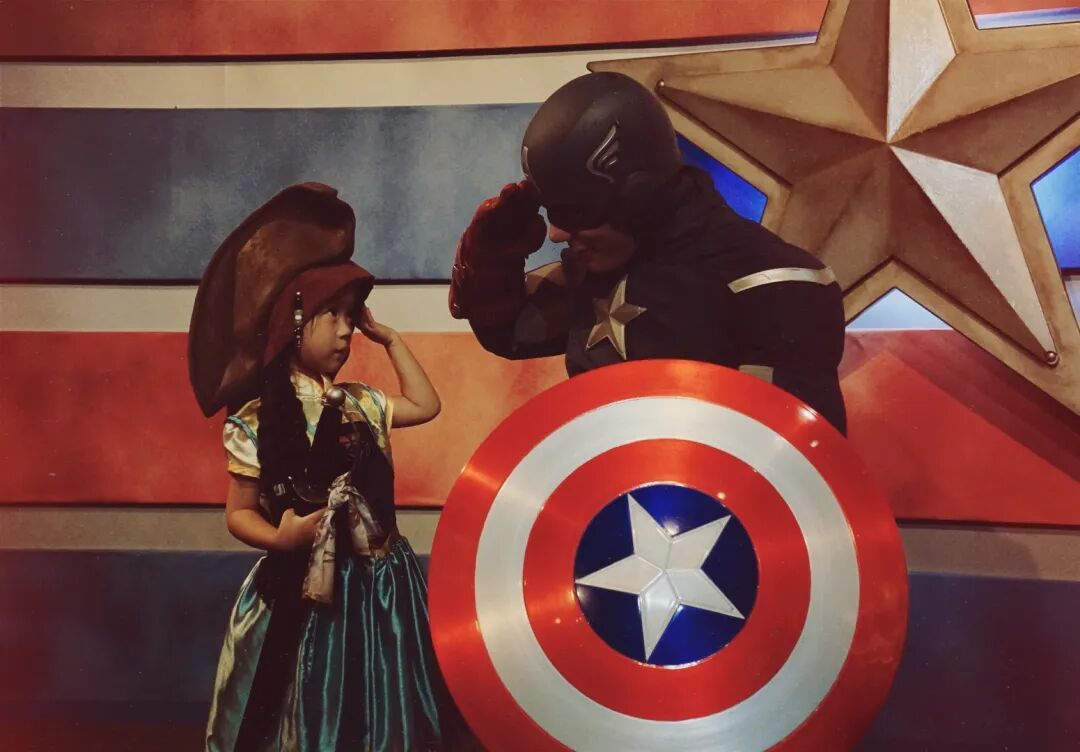 我的女儿超喜欢公主,但也钟情于很多影片中的配角,每次来乐园玩,至少要看两场冰雪奇缘欢唱盛会,有意思的是,后来我才知道,她是为了见驯鹿斯特。她也会突发奇想,直接穿着公主裙配上海盗船长的帽子,感觉自己酷到可以和美国队长交朋友。