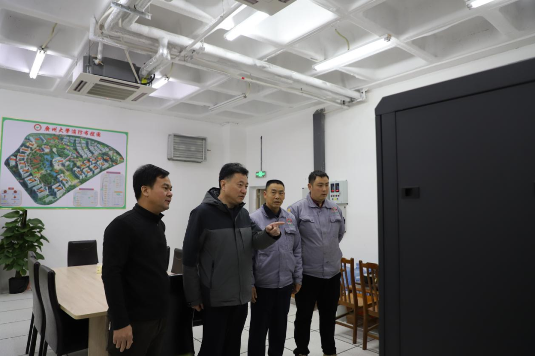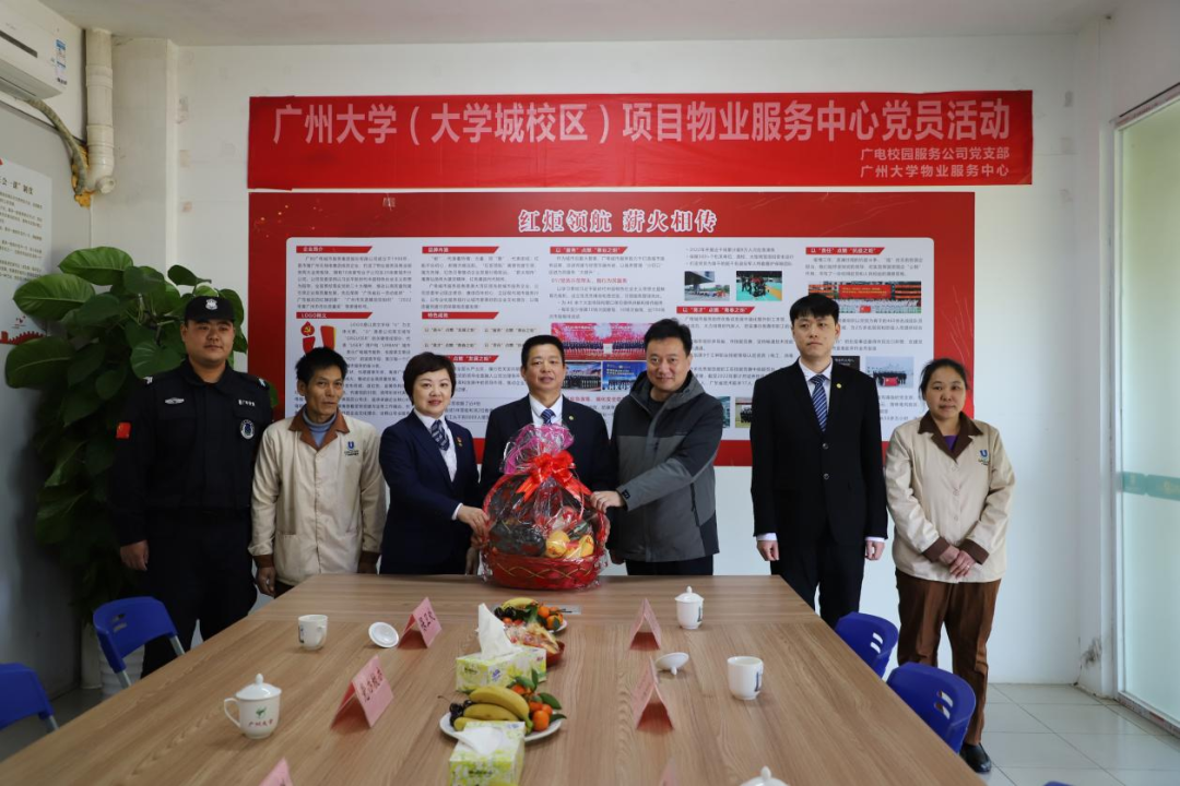 校党委书记欧阳谦一行来到大学城校区物业值守、门诊部、菊苑食堂、消防保卫、维修服务等处,深入了解寒假春节期间后勤服务、医疗保障、学生管理服务、安全保卫等方面的工作情况,看望慰问坚守一线的医护、物业、安保、维修服务、饮食服务值班人员,并与承担我校后勤物业服务的广州广电城市服务集团股份有限公司负责人及项目主管等座谈交流。