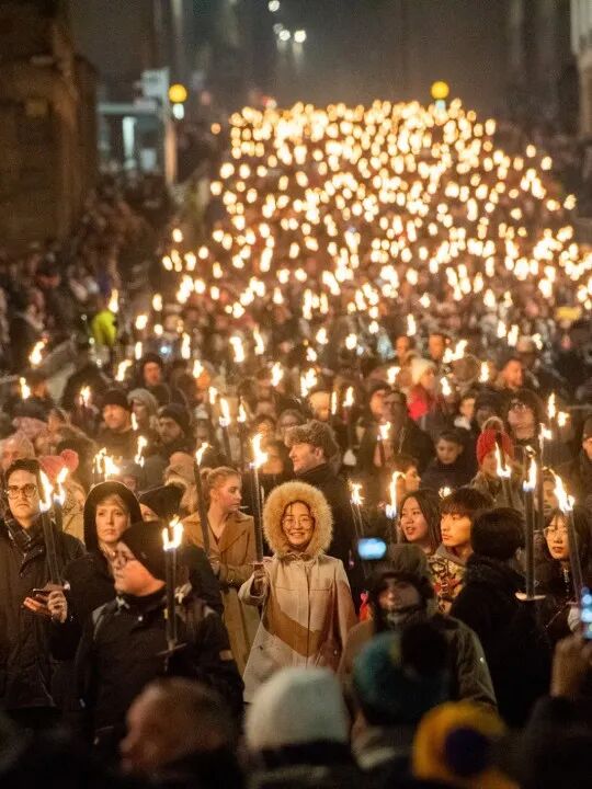 Hogmanay是苏格兰的新年前夜,在苏格兰语中意为“一年的最后一天”,类似于中国的除夕节,在每年的12月31日隆重上演,堪称为苏格兰一年中最著名、最受欢迎也最盛大的传统节日,其历史可以追溯至维京人在 12 月下旬所举办的狂野派对冬至庆典。