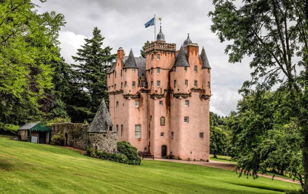 苏格兰最具“少女心”的城堡一定是粉色的克雷格瓦城堡(Craigievar Castle)!城堡独特的粉色外观而闻名。高耸的塔楼,尖顶的屋顶,以及淡粉色的外墙,不仅是苏格兰男爵风格建筑的象征,更是迪士尼《灰姑娘》城堡的灵感来源。