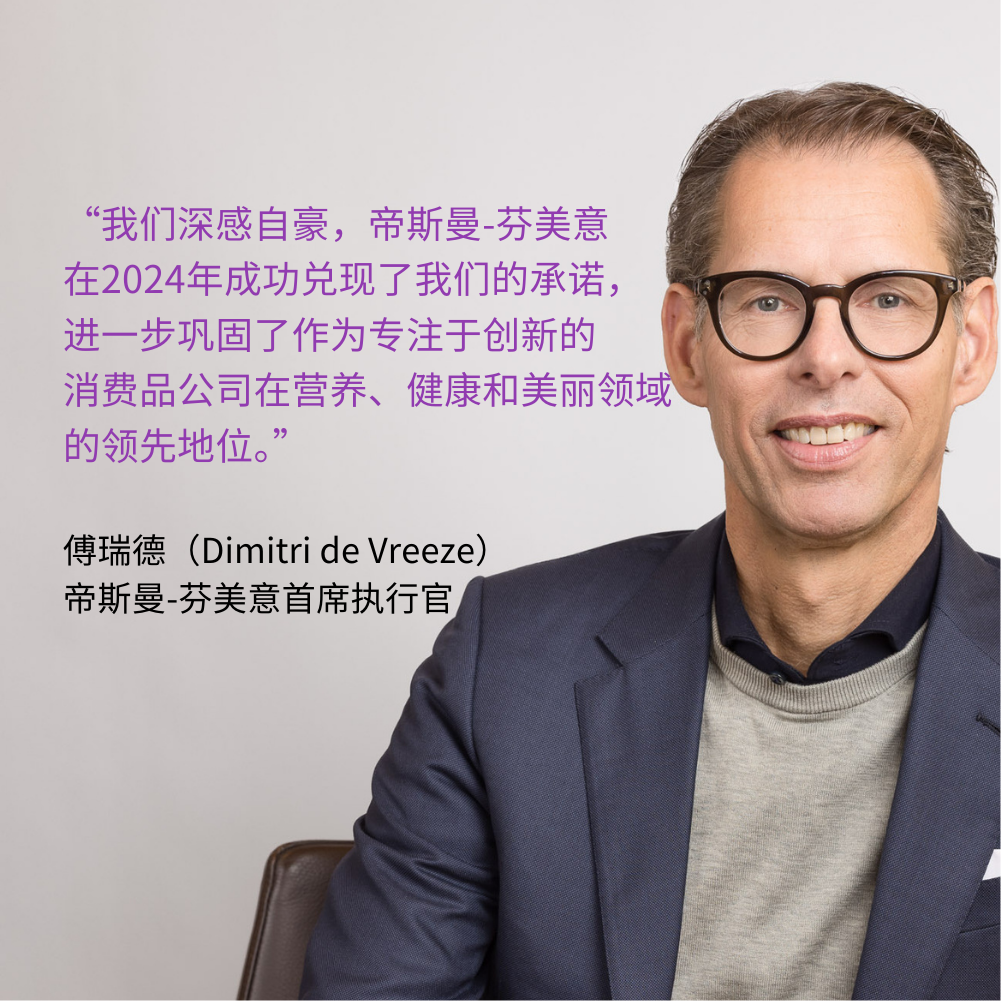 这些成就,加上终端市场的持续向好趋势,使我们对2025年充满信心,将继续执行战略计划,全力聚焦于发展创新驱动的核心业务。展望未来,我们有信心在2025年进一步实现约2亿欧元的调整后EBITDA,主要得益于成本与收入协同效应以及维生素转型计划的持续推进。”