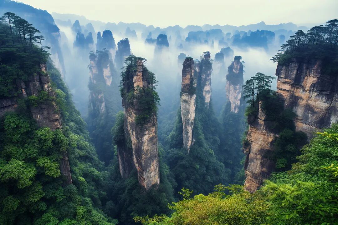 ▲张家界地貌:石英砂岩岩峰似剑指苍穹,诉说着亿万年的抬升与侵蚀