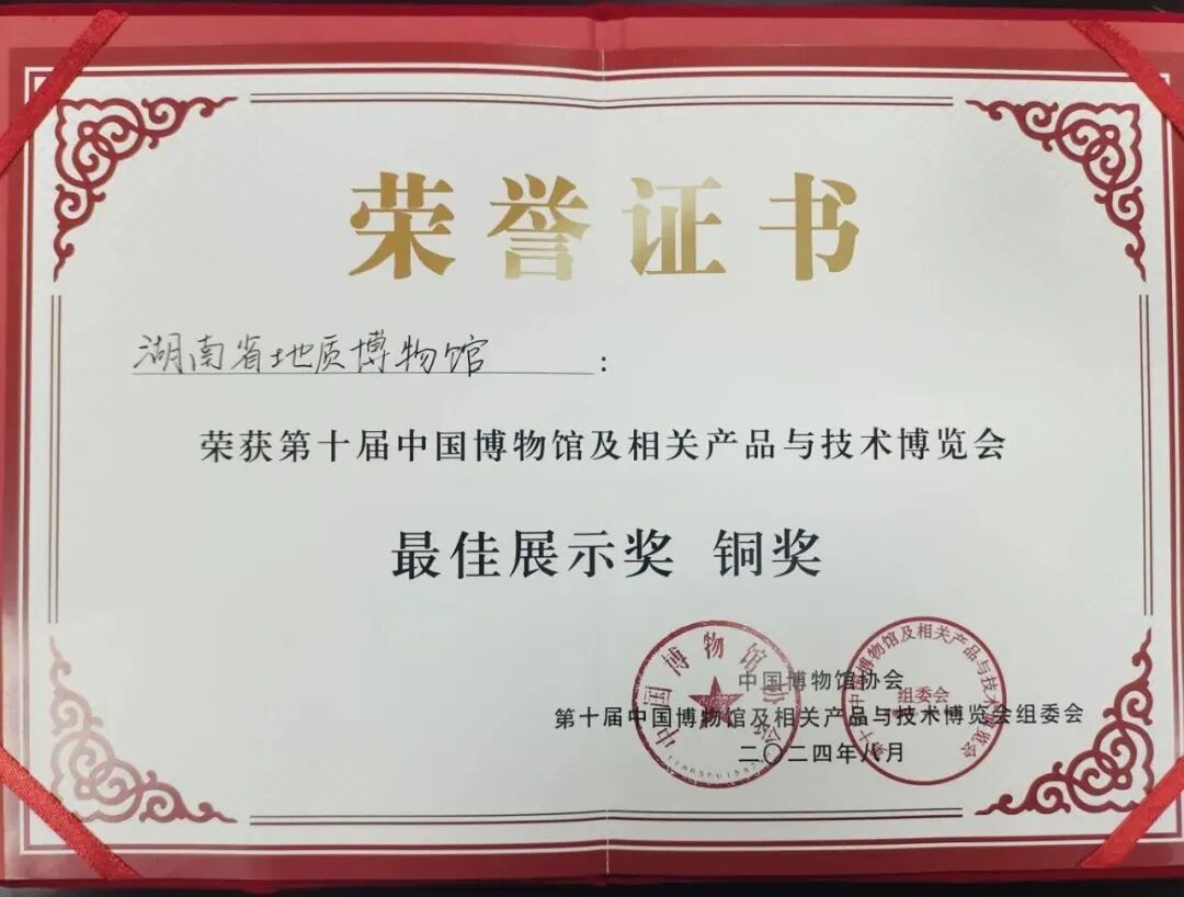 “人间最美是稻田”耕地保护专题展览是全国首个省级耕地保护专题展览,宣传视频《稻花乡里说丰年》在首届自然资源文化创意大赛中,荣获“视觉类优秀奖”。在第十届中国博物馆及相关产品与技术博览会,省地质博物馆并凭借对湖湘自然资源文化的全方位展示荣获了本届博博会“最佳展示奖 ”铜奖。