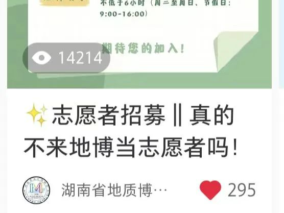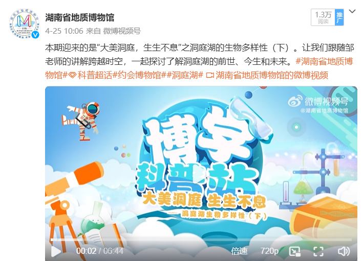 为拓宽宣传渠道,省地质博物馆不断加强全媒体传播体系建设,运营全方位自媒体网络矩阵。以官网、官微、官抖、官博等为核心,入驻小红书、哔哩哔哩等平台,持续运营,打造“群众身边的博物馆”。目前微信公众号粉丝量达100万,蝉联湖南省自然资源政务微信排行榜第一。