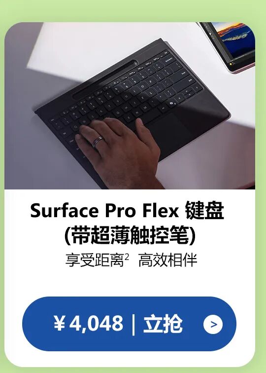 友情提示:本文内所示商品信息及价格仅供参考,本商城可能对其进行调整而不另行通知,请以微软官方商城商品详情页信息为准。礼赠详情以最终加入购物车的实际情况为准。[1] Surface 触控笔需单独购买。Surface 超薄触控笔 2 适用于 Surface Pro 第11版、Surface Pro 9、Surface Pro 8、Surface Pro X、Surface Laptop Studio 2 及 Surface Laptop Studio。触觉反馈功能仅与 Surface Pro 第 11 版、Surface Laptop Studio 2、Surface Pro 8、Surface Pro 9和搭载 Windows 11 的 Surface Laptop Studio 兼容。Surface 超薄触控笔 2 不附带充电器,可使用 Surface 超薄触控笔充电器、Surface Pro Flex 键盘、Surface Pro 键盘(带触控笔存储位)、Surface Laptop Studio 和 Surface Duo 2 笔帽充电。全部单独出售。[2] Surface Pro Flex 键盘(带超薄触控笔)可以连接 Surface Pro, Windows 11 AI+ PC、Surface Pro 10、Surface Pro 9 和 Surface Pro 8。分离使用时需要 Windows 11。
