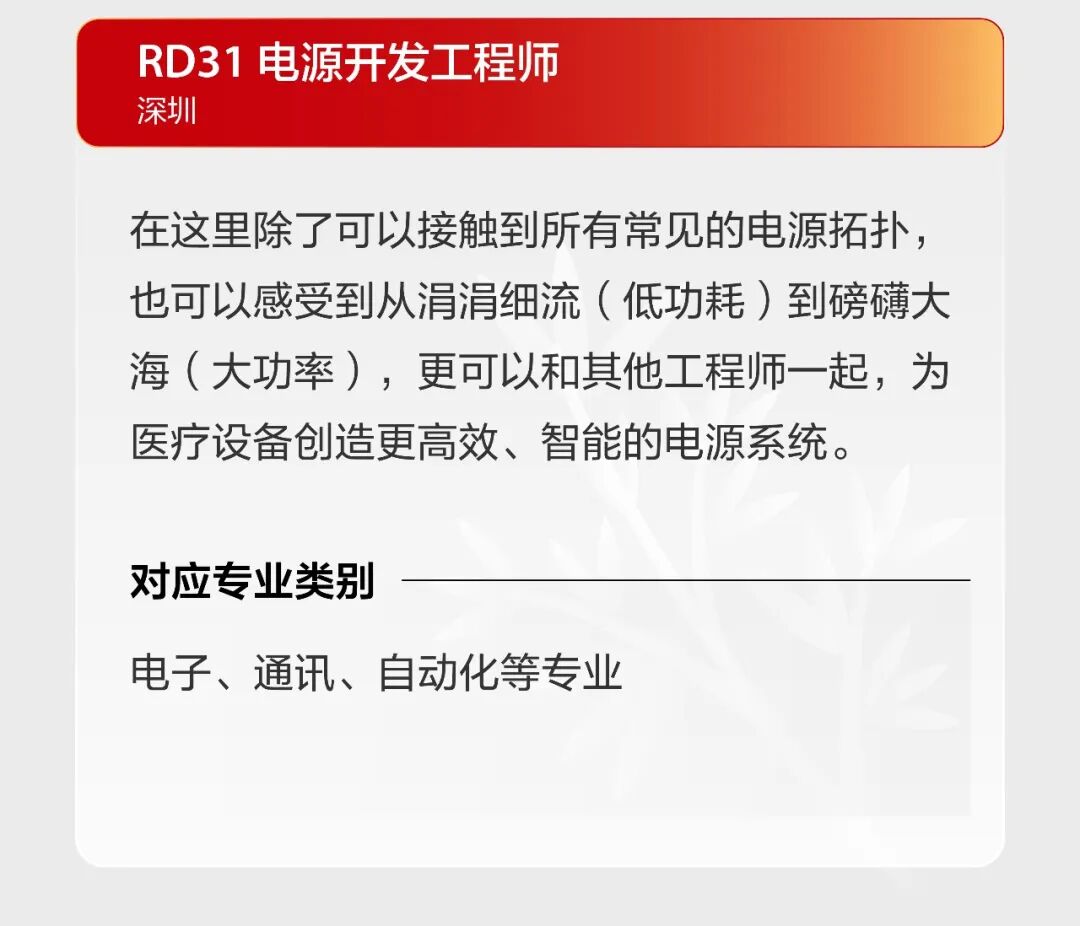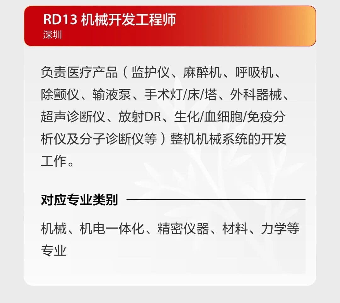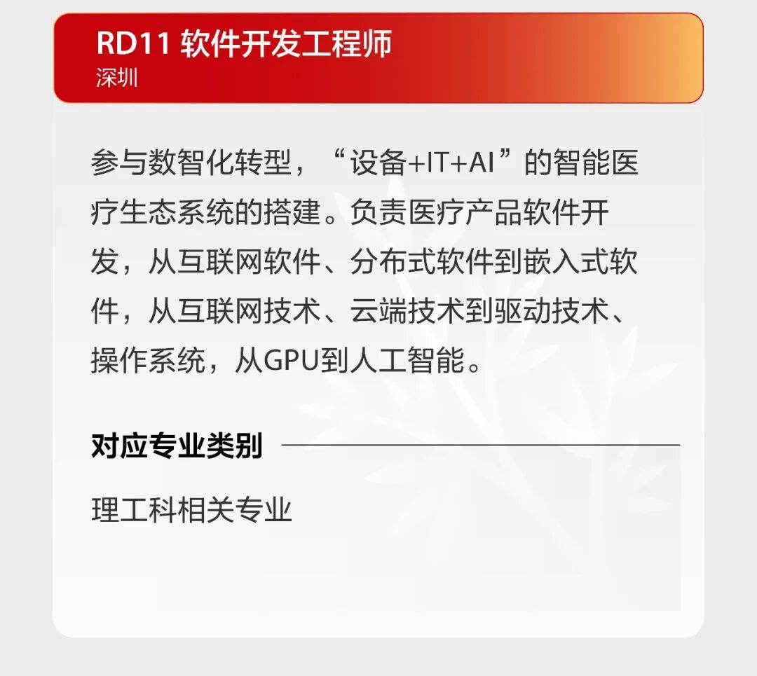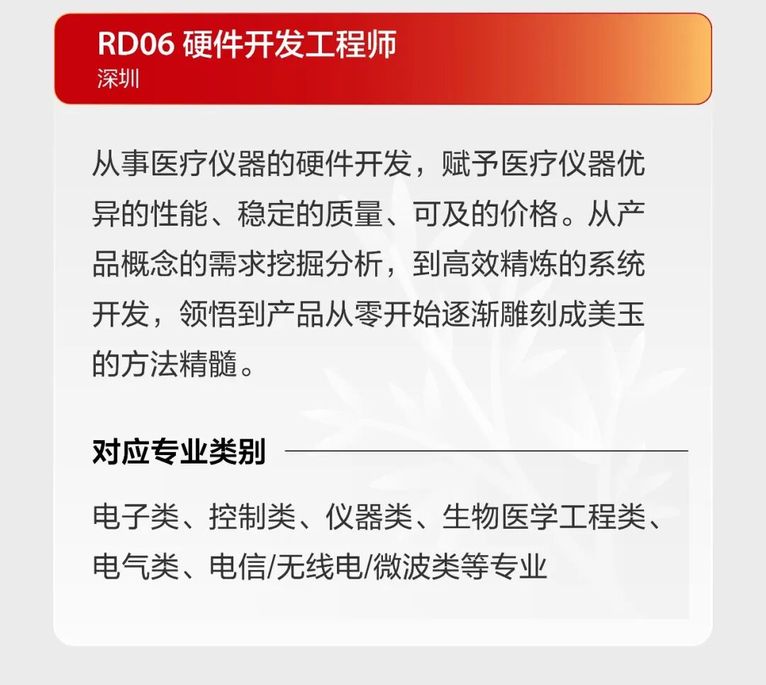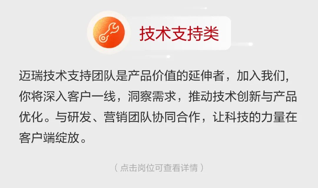 文章内容来源于公众号:迈瑞招聘,点此可查看原文,内容版权归相关企业所有,本网站仅供交流学习。若涉及版权问题或存在侵权情况,请及时与我们联系,我们将第一时间进行删除处理。