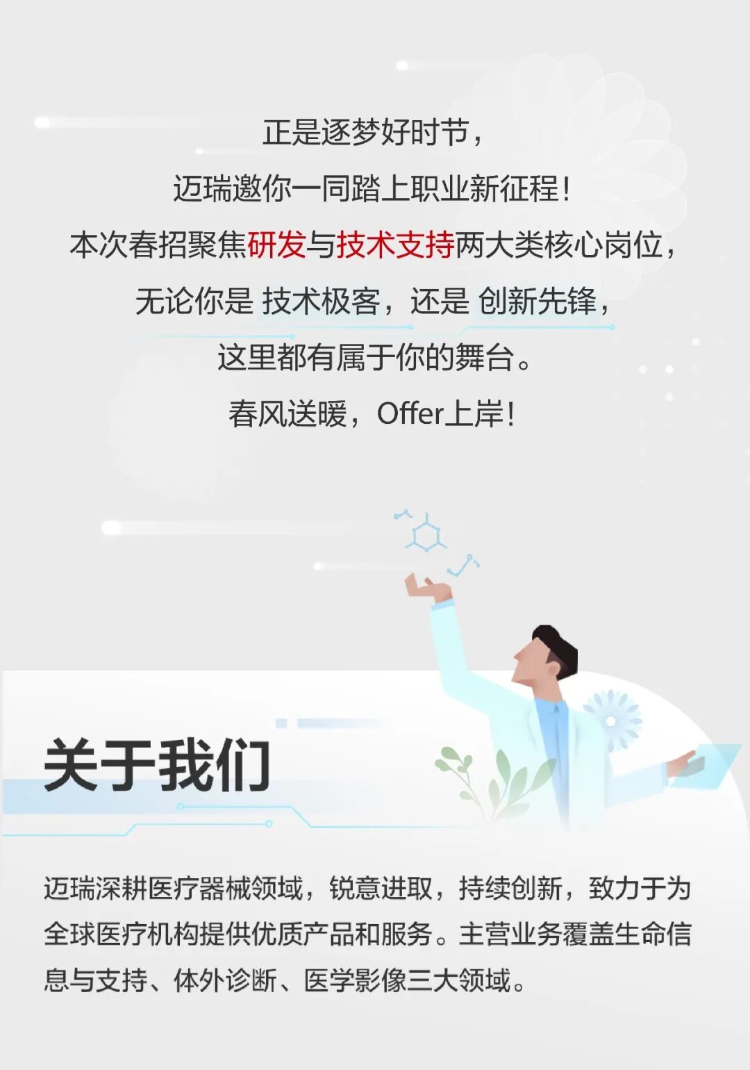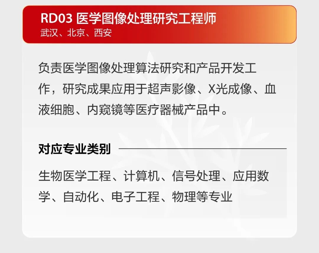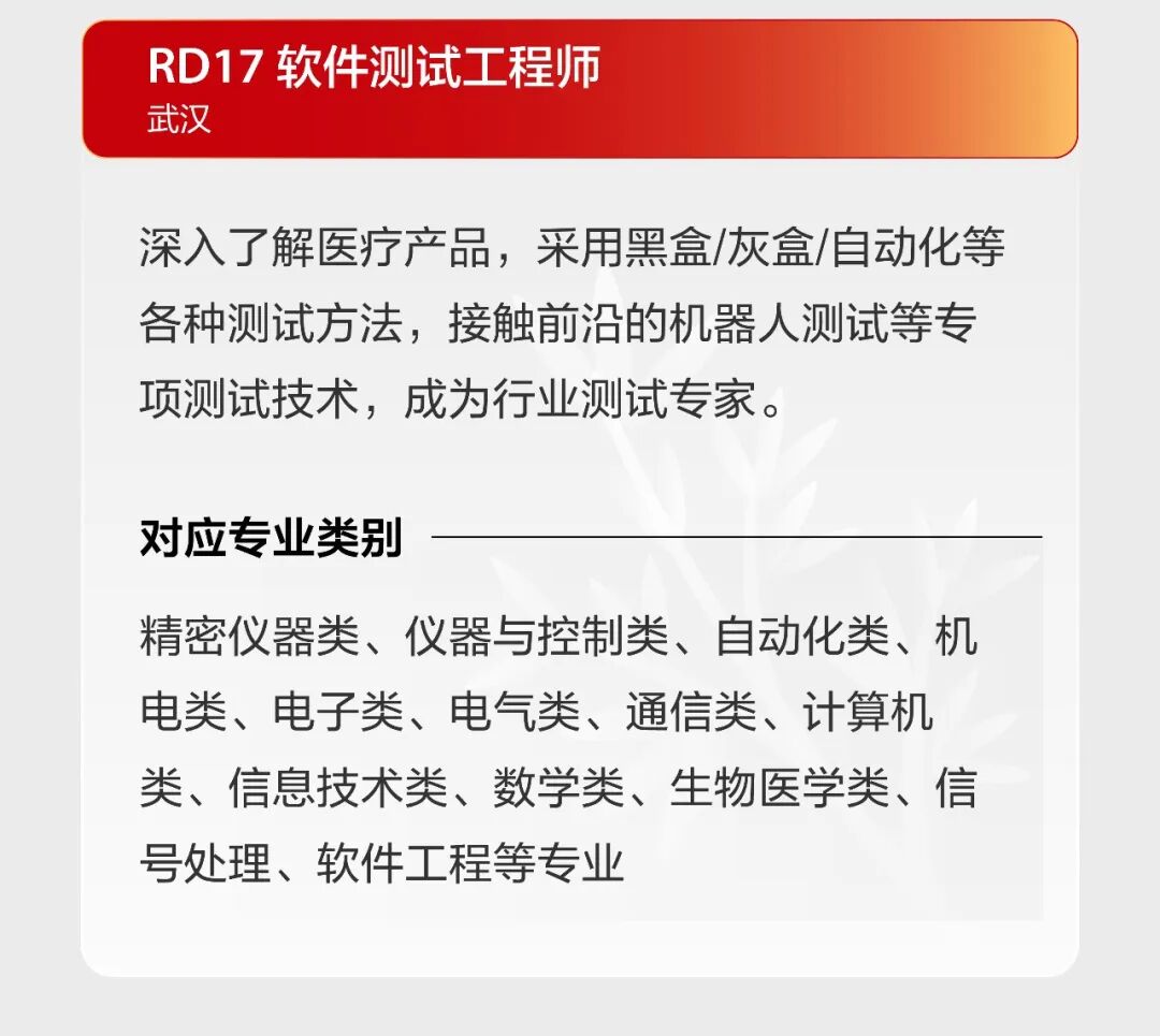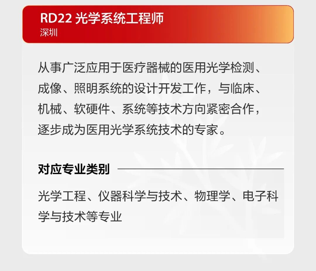 文章内容来源于公众号:迈瑞招聘,点此可查看原文,内容版权归相关企业所有,本网站仅供交流学习。若涉及版权问题或存在侵权情况,请及时与我们联系,我们将第一时间进行删除处理。