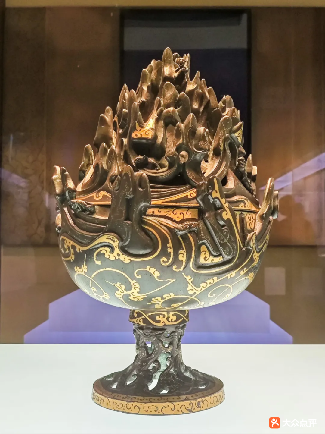 《哪吒之魔童闹海》的七彩宝莲是参考了河北博物院的文物---错金铜博山炉。错金铜博山炉的炉盖呈尖锥状山形,层峦叠嶂,山峦间有人物、走兽出没。