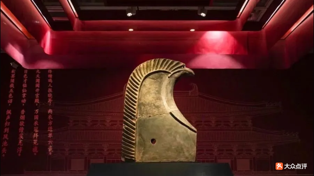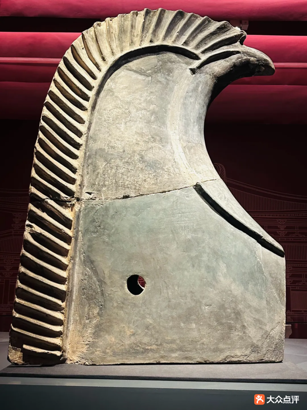唐代陶鸱尾现藏于上海闵行博物馆,原来本是唐太宗李世民昭陵献殿正脊之上,《哪吒之魔童闹海》玉虚宫场景的设计灵感可能来源于此。这种建筑造型在唐代前期称为“鸱尾”,中晚唐时期逐渐演变为“鸱吻”,其造型有着防火镇邪的寓意。