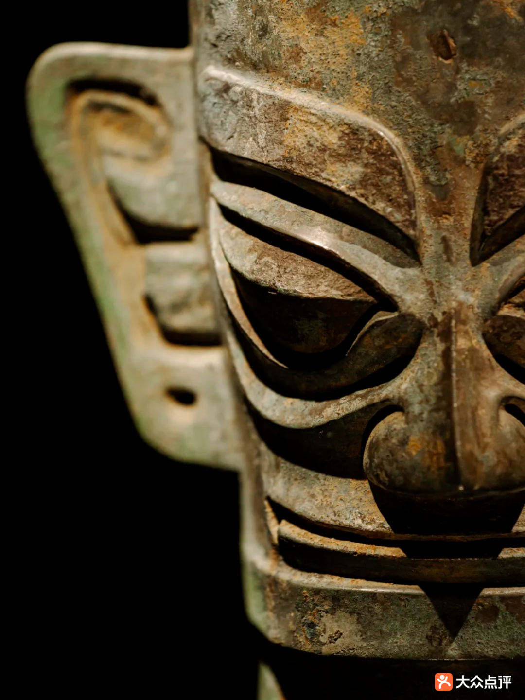 在《哪吒之魔童闹海》里的两个看守哪吒、戴着金色面具的青色结界兽,实力不详,遇强则强,谁来了都能撑3秒。其原型参考了三星堆中出土的青铜纵目面具。