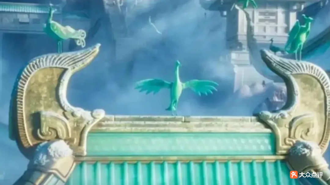 《哪吒之魔童闹海》中玉虚宫的鸱吻主要参考了唐代建筑中的鸱尾、鸱吻造型,以及宋代名画《瑞鹤图》中的相关元素。
