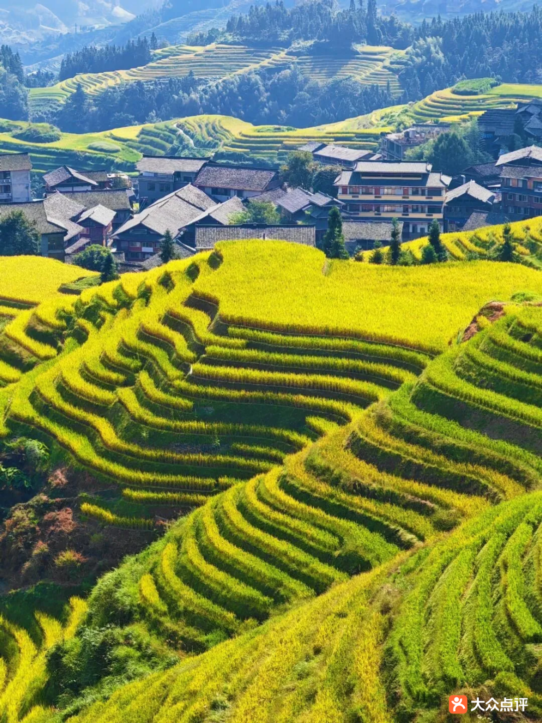 龙脊梯田,顾名思义,是在龙脊山上开发出来的梯田。梯田如龙脊蜿蜒,秋季金黄层叠,春季水光潋滟,一年四季,景色各不相同。