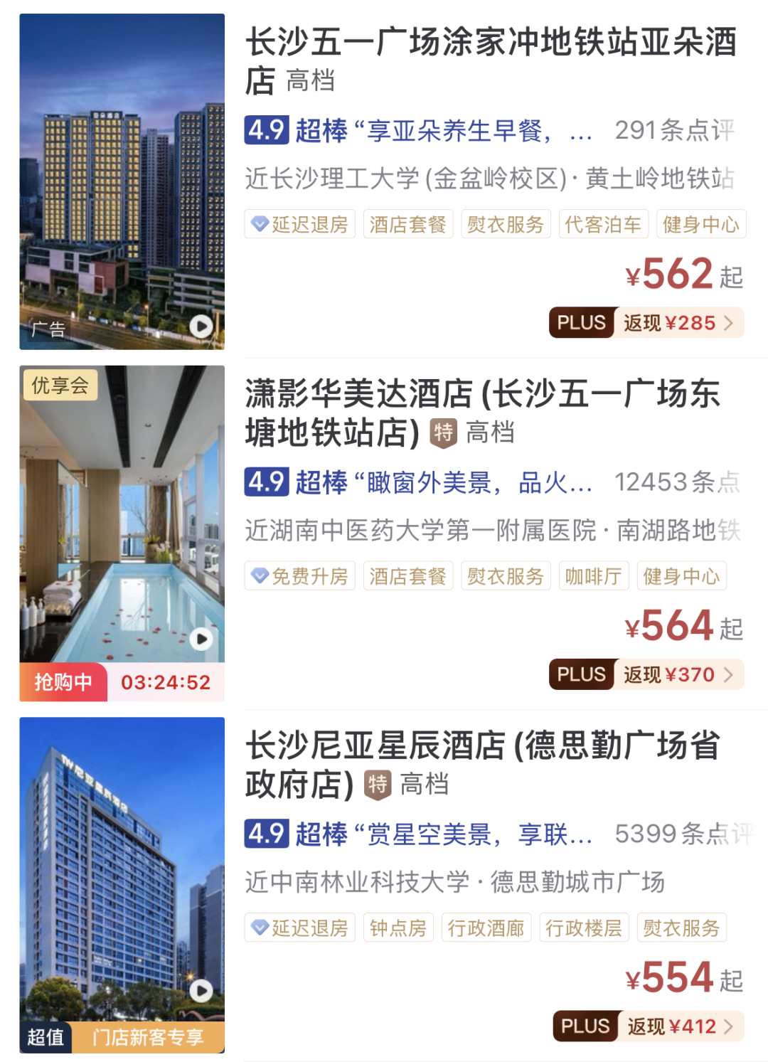 长沙马栏山假日酒店 | ¥400+/晚 | 108元/位 |