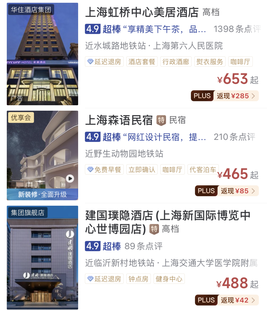 上海虹桥雅高美爵酒店 | ¥500+/晚 | 129元/位 |