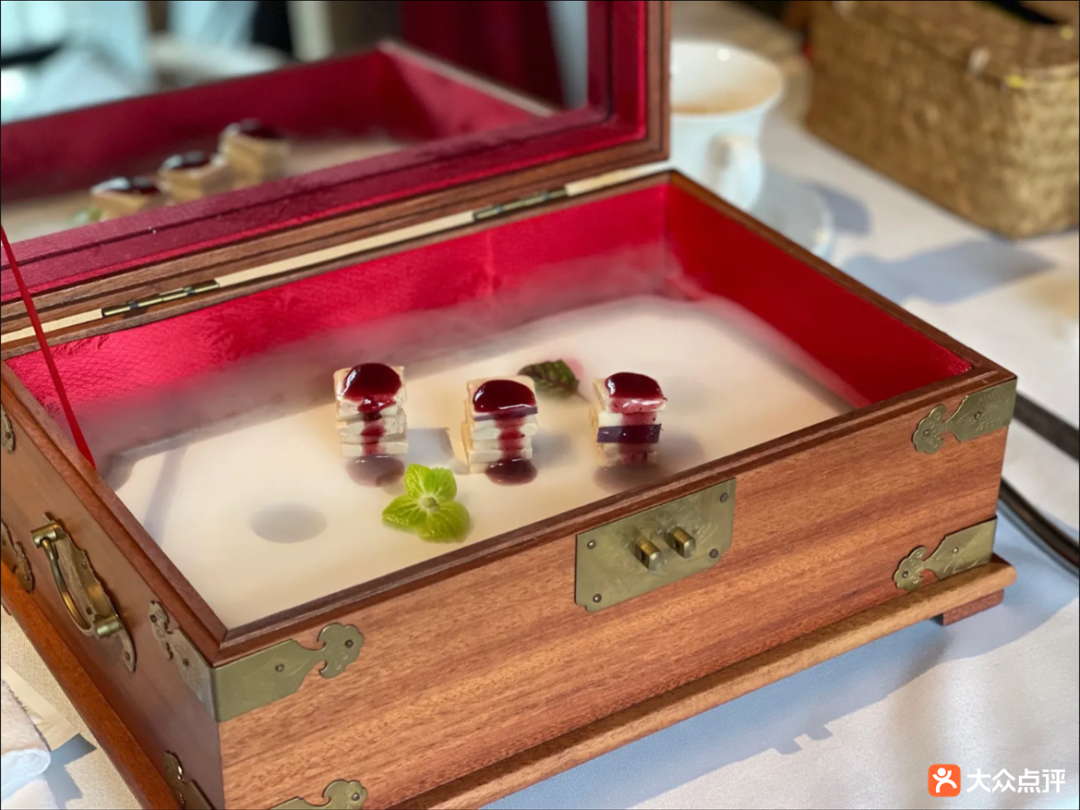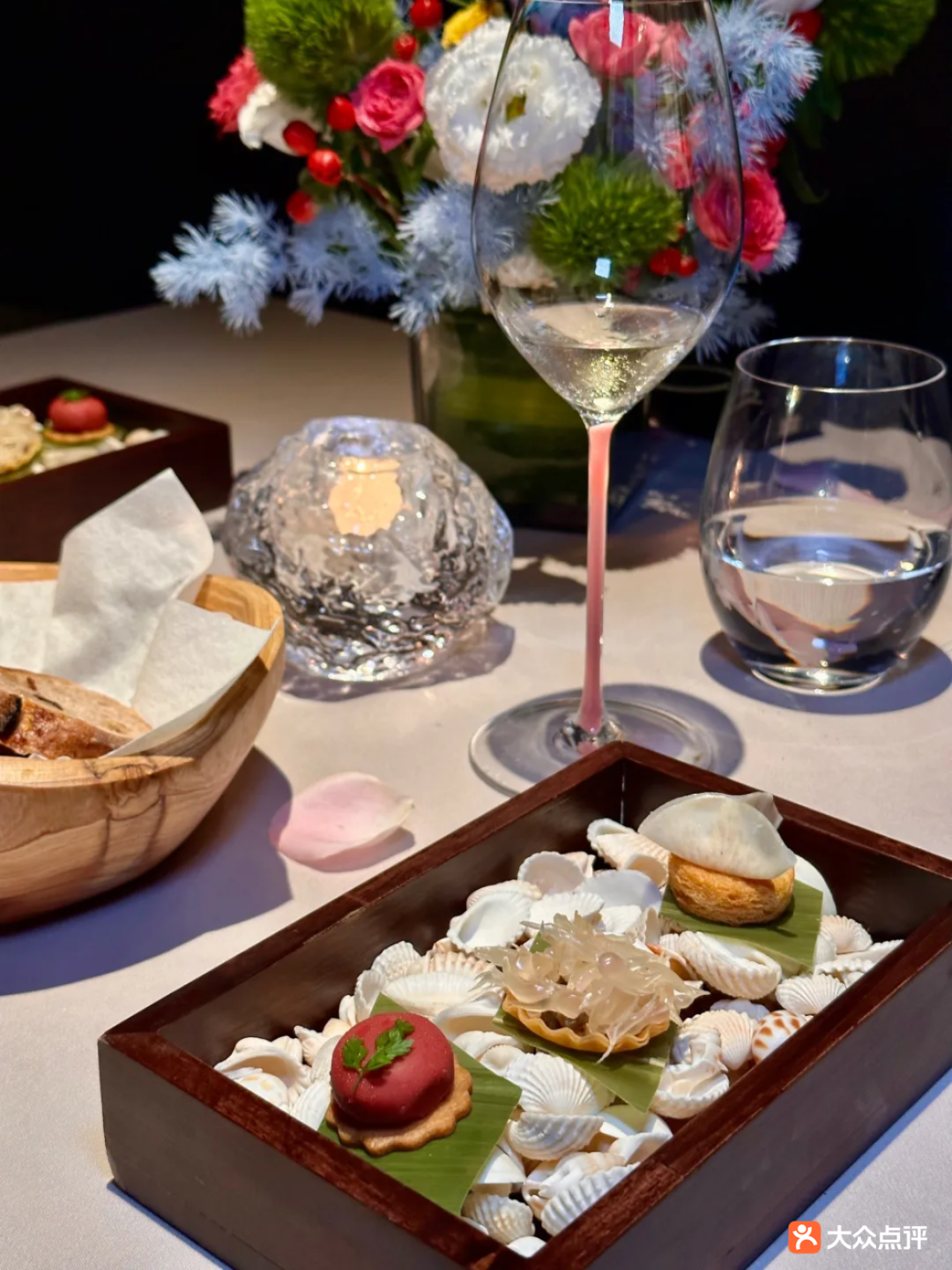 基于环游世界的主题,会给大家“护照夹”,所有菜品结束后,就可以把对应卡片放进去,具有强烈的仪式感。整体装修风格高端简约有情调,很适合情侣约会。