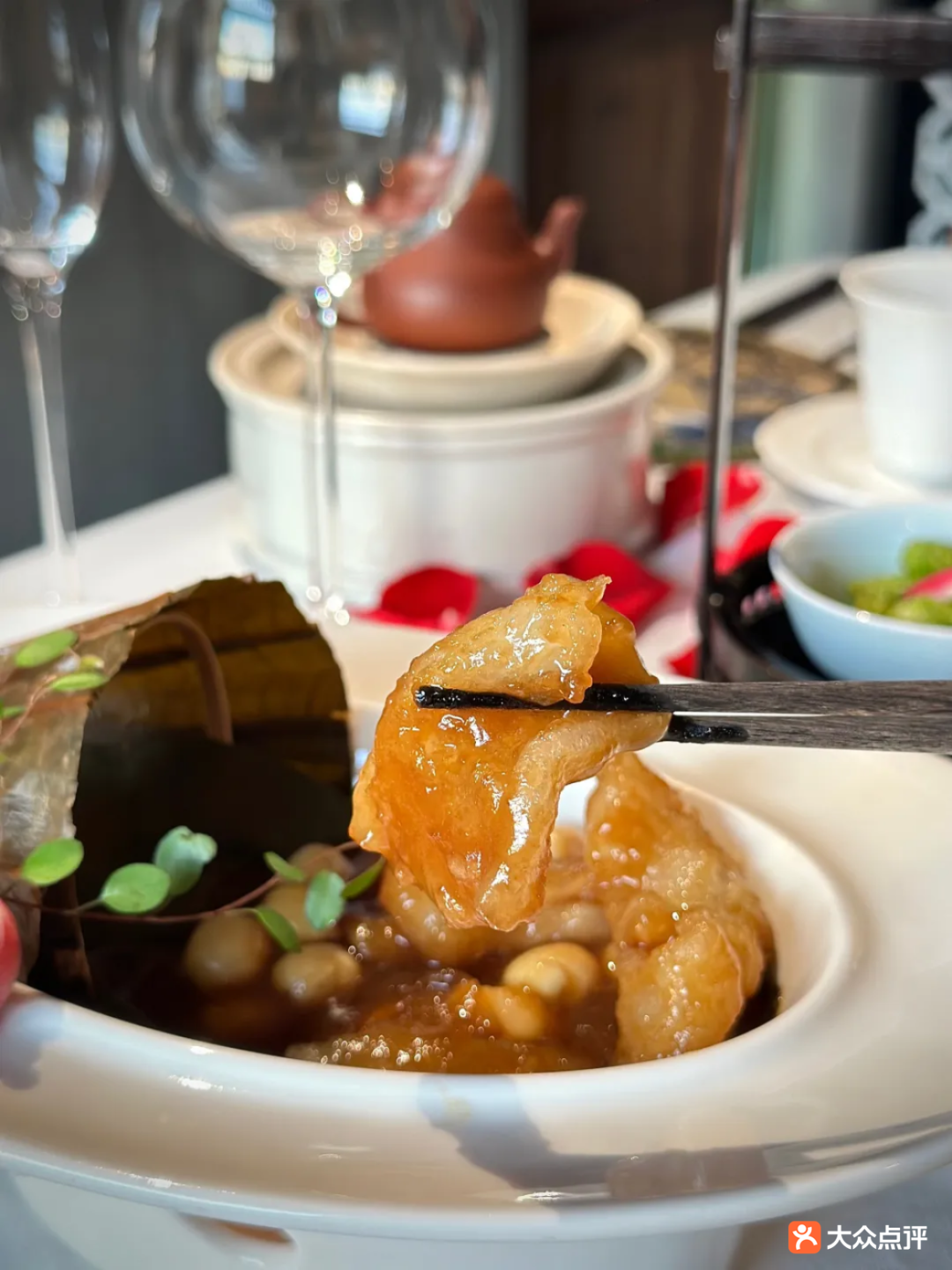 主打潮式私房菜,特色的荷香鲍汁花胶,满满的胶原蛋白,滑而不腻,很适合女孩子~还有鲜果法国鹅肝,摆盘精致有创意,鹅肝吃起来细腻,与鲜果的清新完美融合,口感层次丰富,好吃又不腻~