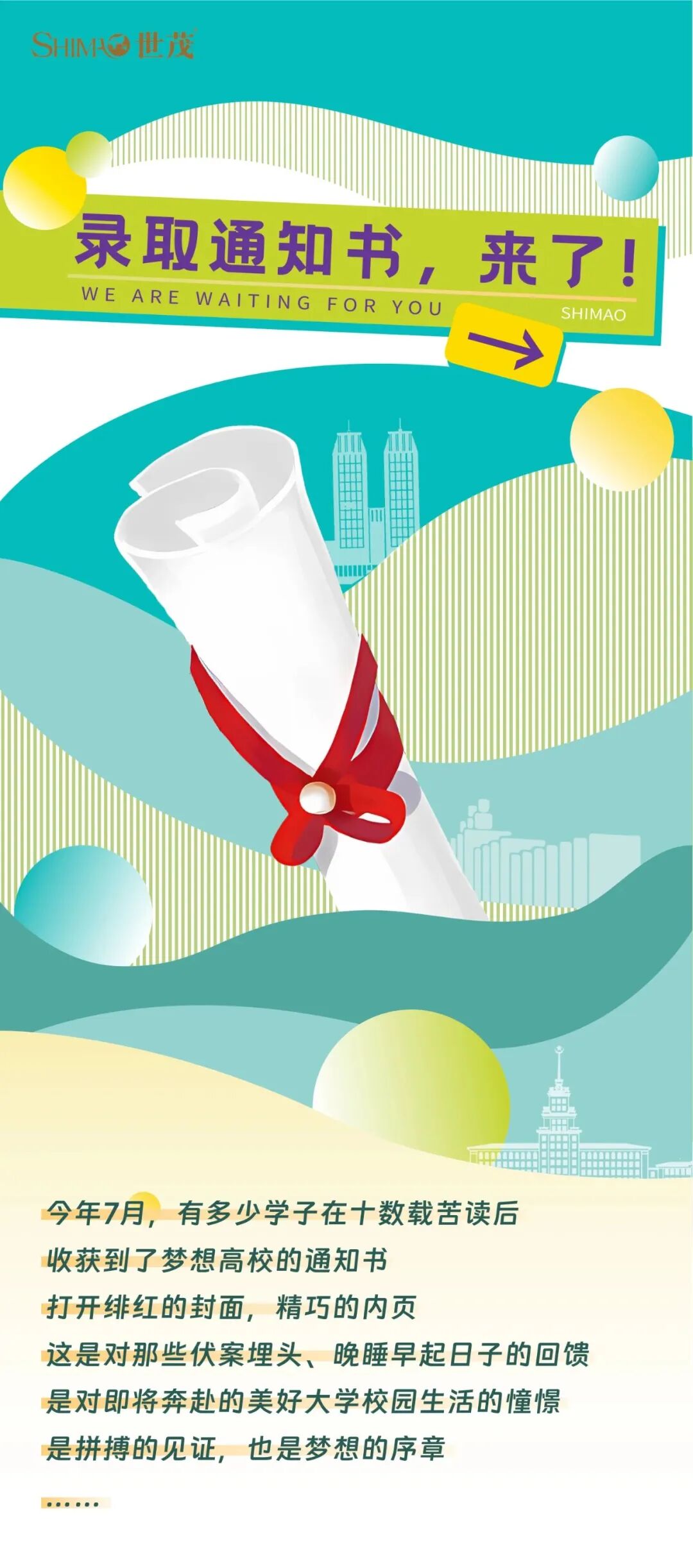 世茂真诚地祝福这些梦想实现的学子们,一起与你分享收获的喜悦。我们也期待在未来的大学生活里与你惊喜相遇,护航校园生活,共赴精彩旅程。