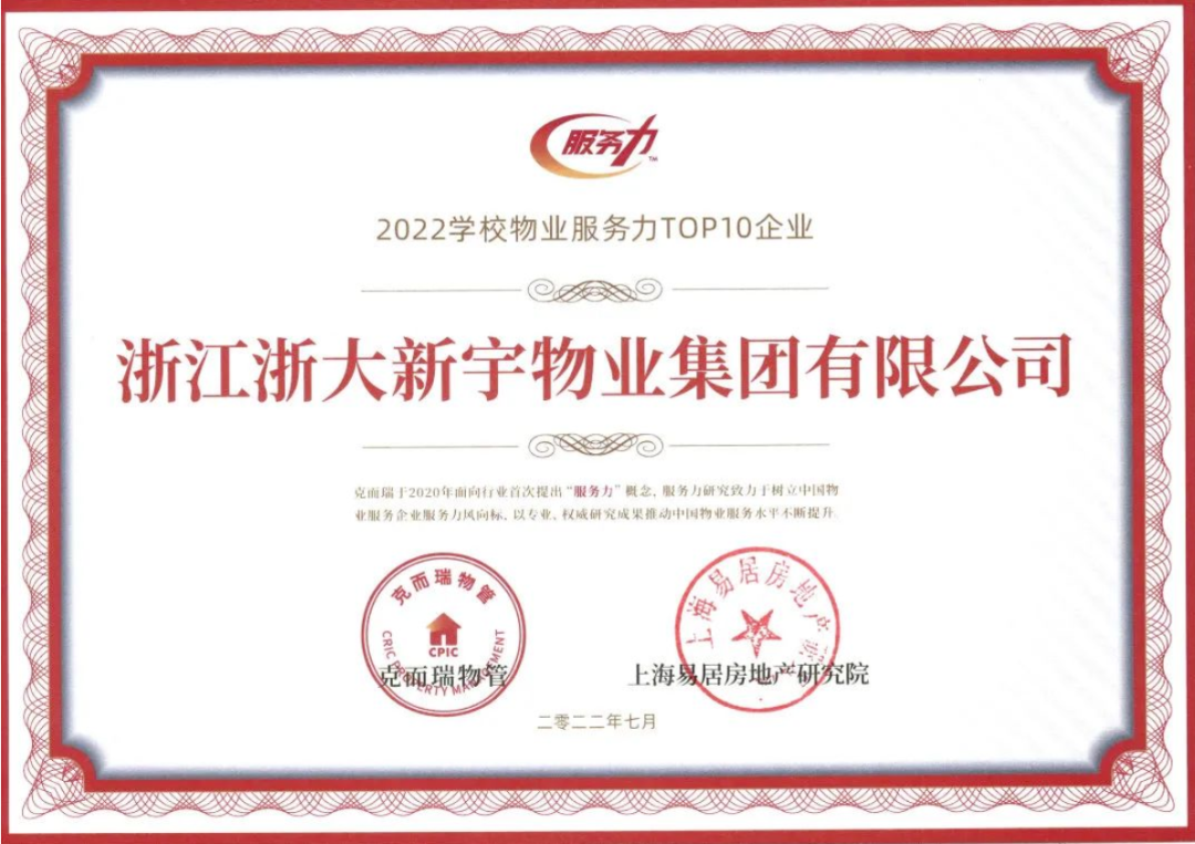 目前,世茂服务旗下高校园区服务品牌——浙大新宇,聚焦于高校园区领域,服务涵盖30多城市、超过280个高校园区,已经为北京大学、浙江大学、南开大学、北京师范大学等众多知名高校提供了优质的服务,连续蝉联"中国学校物业服务领先企业TOP1"。(榜单来源:克而瑞·物管)