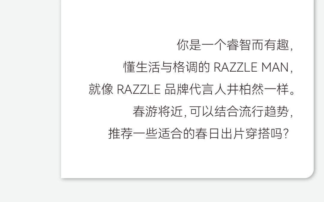 摘要:与RAZZLE品牌代言人井柏然Get衬衫式外套穿搭术