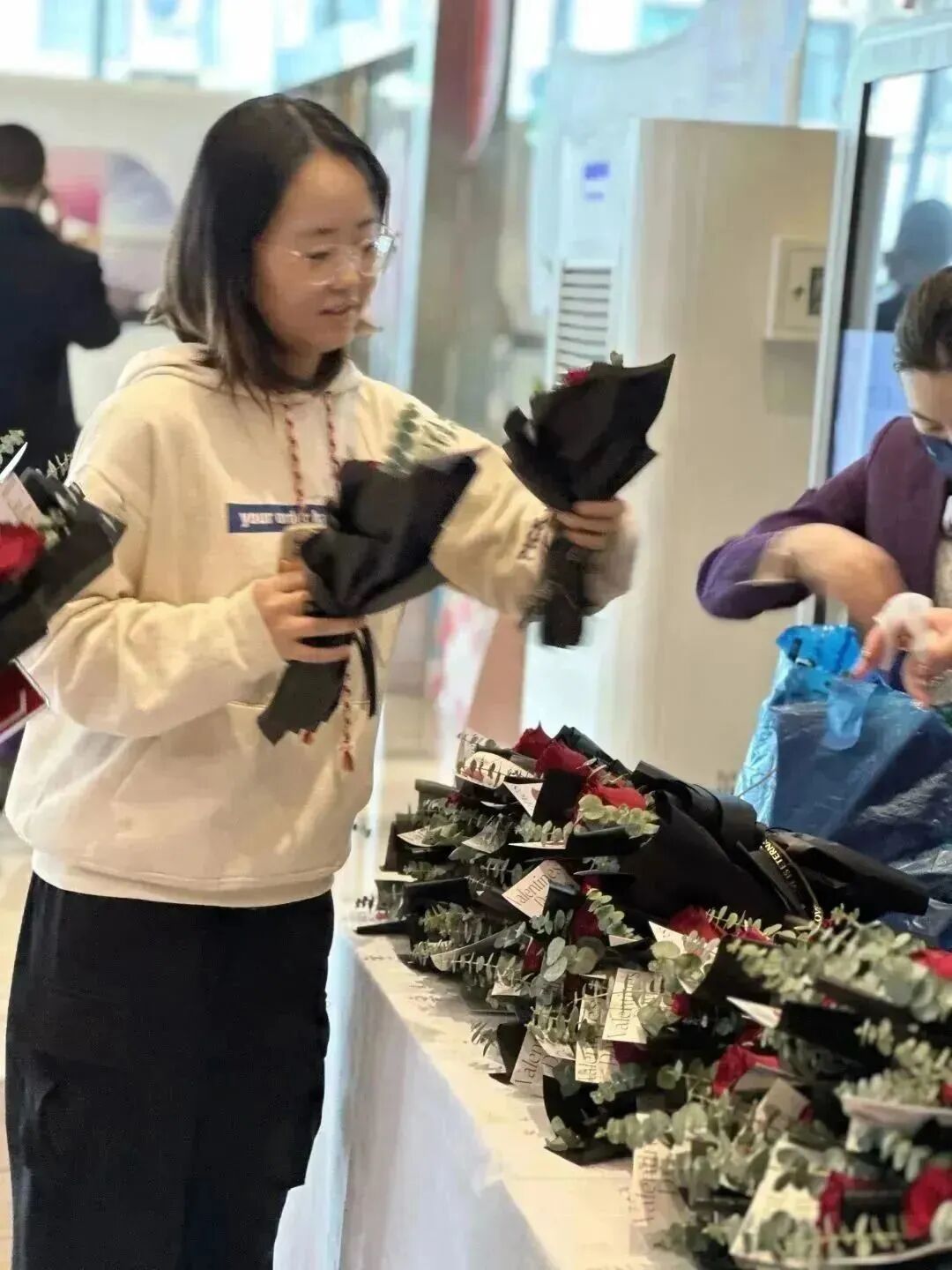 为写字楼的白领送来玫瑰
