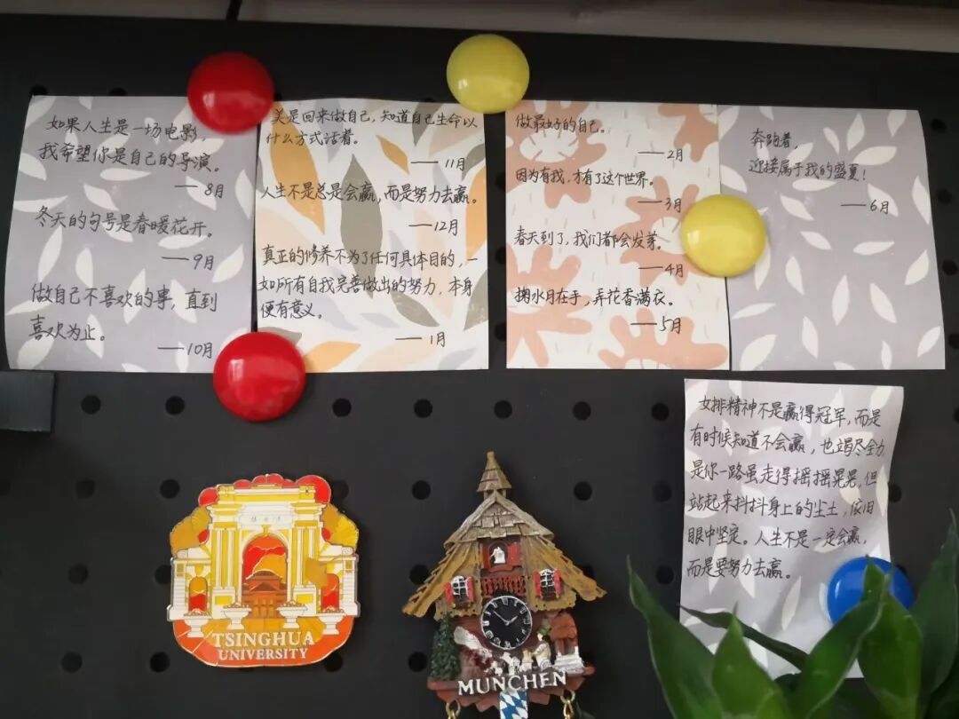 此外,还有一个书签、一些清华的美景图片,甚至是我给自己写的有清华字样的小纸条,都给了我无穷的动力,让我向着清华梦前进,也希望能给学弟学妹们带来一些借鉴和力量,希望和你们晚夏相会于清华园。