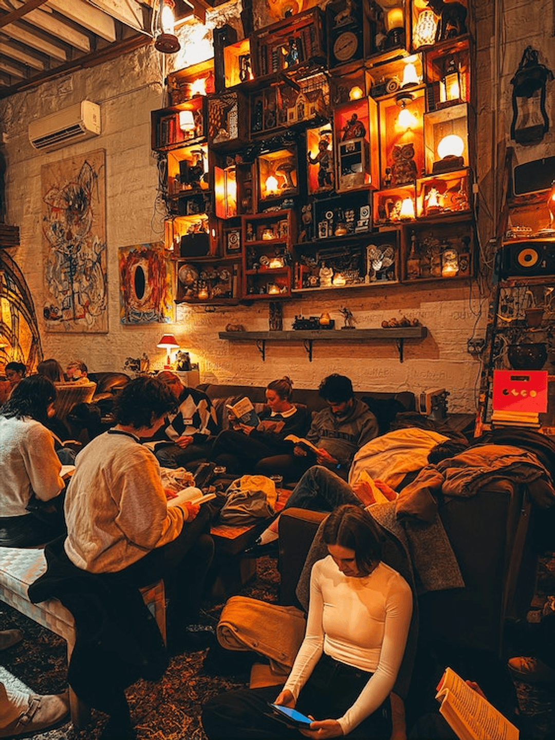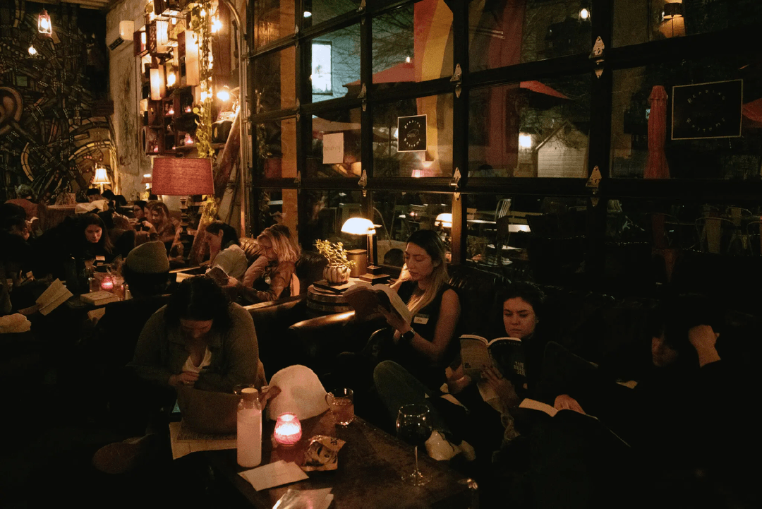与之类似,许多以书为主题的线下空间也开始兴起:书籍酒吧、学术酒吧、面对面的读书沙龙……这正符合社会学家 Ray Oldenburg 在 1989 年创造的术语“第三空间”:家庭和工作之外,供人聚会、社交、寻找真我的空间。