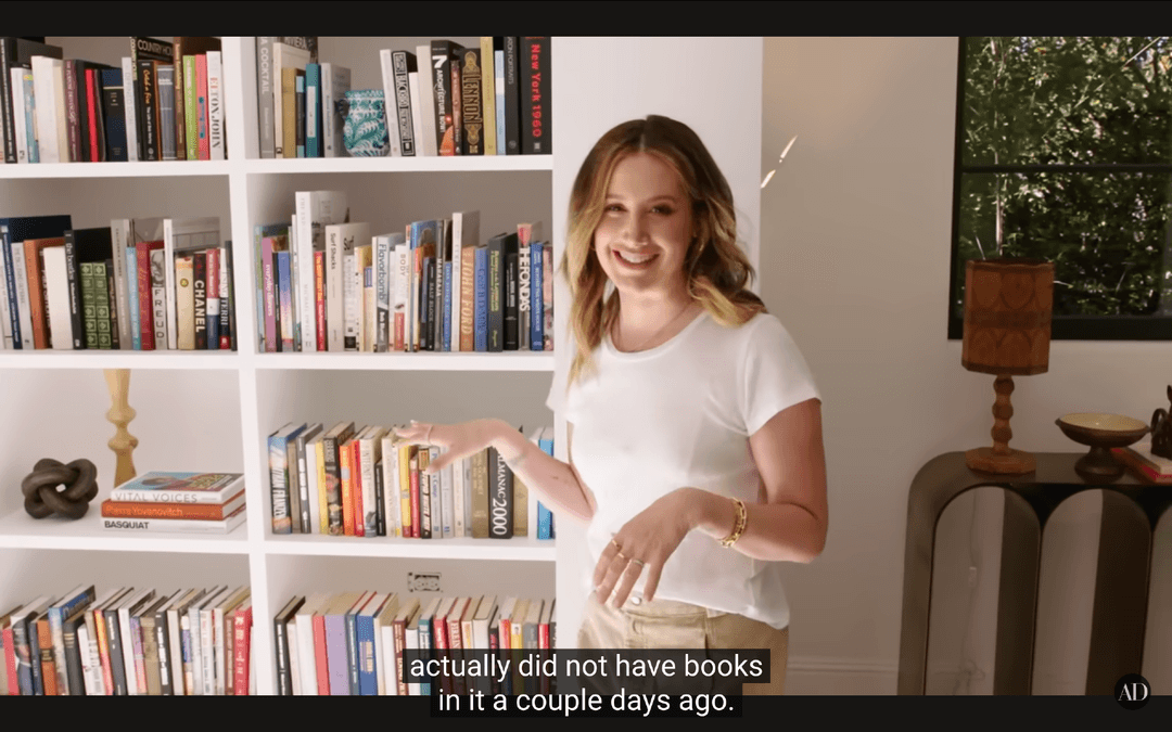 这是 2022 年歌手、演员 Ashley Tisdale 在接受建筑杂志 Architectual Digest 采访时,站在书架前说的话。