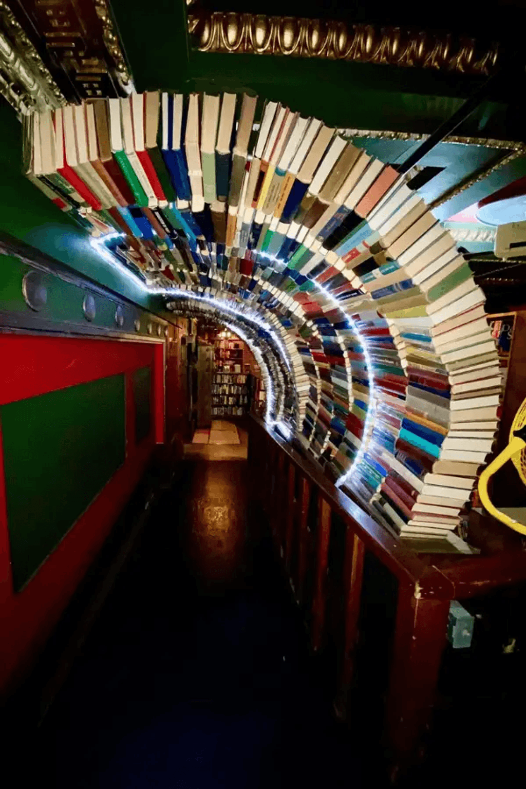 ● Jenna Hipp 在洛杉矶的书店“The Last Bookstore”,陈列了一个按颜色排列的“彩虹书拱门”