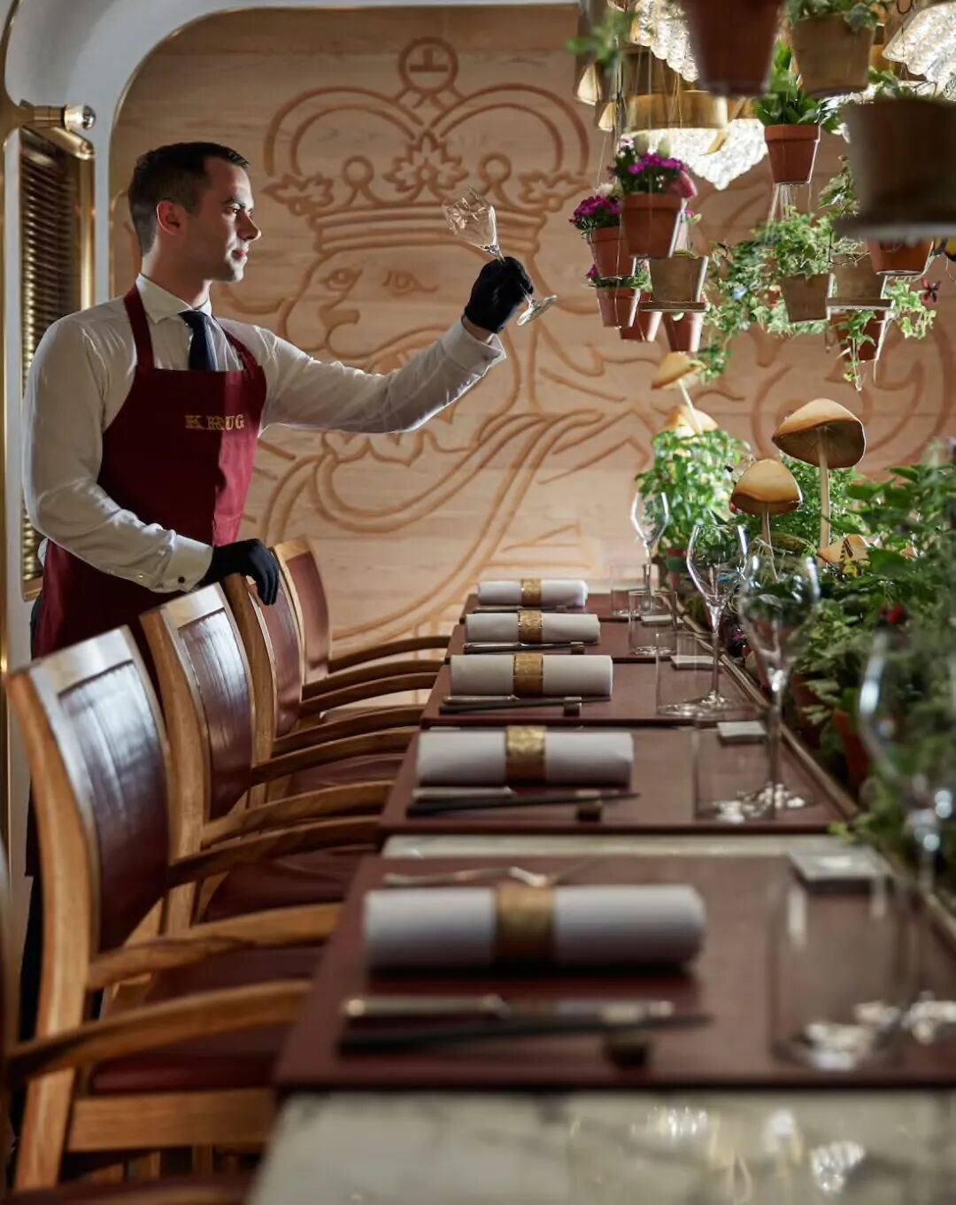 香港文华东方酒店还有一处极具独特性的餐饮体验,那就是限时限量开放的全球唯一库克厅(The Krug Room)。