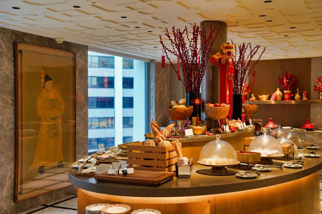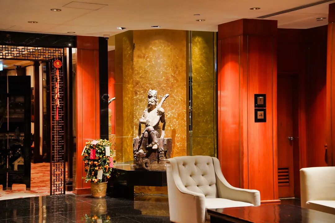 在酒店23层的行政酒廊文华阁,入座后,首先映入眼帘的是视线尽头一件古代朝服的精美陈列品。