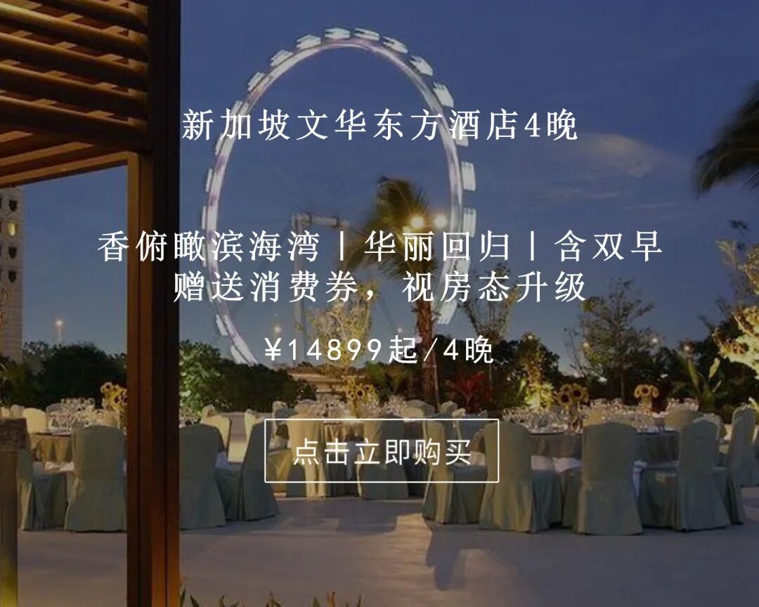 俯瞰滨海湾|华丽回归|4晚新加坡文华东方大酒店连住套餐|含双早,赠送消费券,视房态升级