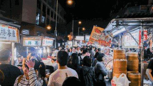 台北夜市从晚上开到凌晨的夜市到处人声鼎沸,你可以从从夜市的一头吃到另一头。