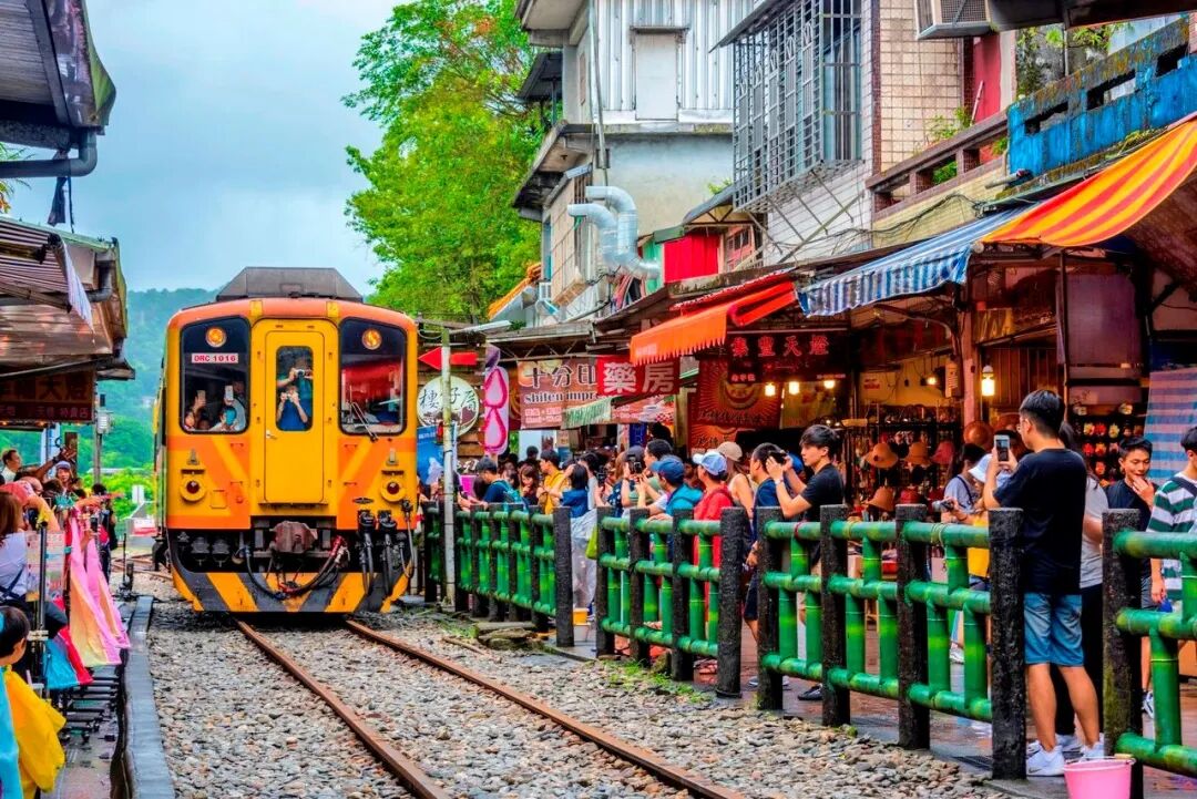 在十分老街有全台唯一火车、铁轨从门前过的景况