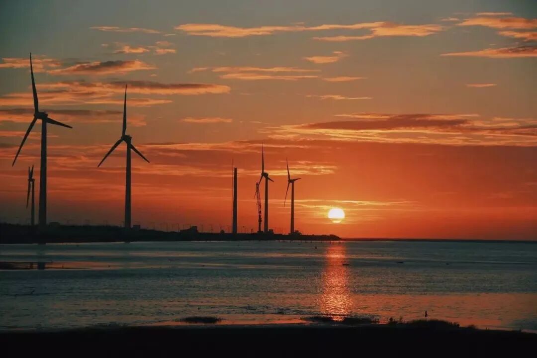 位于大甲溪出海口的高美湿地,是台湾人向往的日落美景之一。等到夕阳染红整片天空时,再配上一座座风力发电的巨大风车,波光粼粼反射如金箔般的闪亮,竟有了一丝在天空之境的错觉。