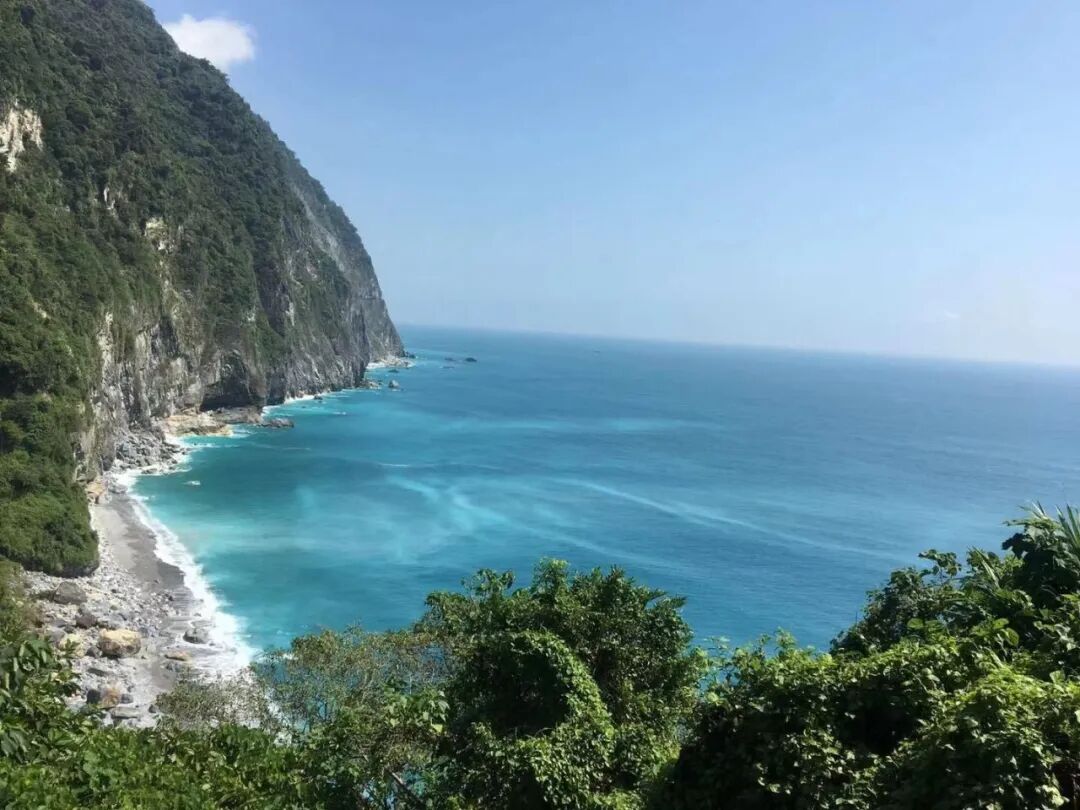 从花莲县出发,到达崇德的立雾溪口隧道,便能踏上苏花公路上最险要的清水断崖。清水断崖是临山崖凿开的山间公路,一边是山,一边是蓝色的大海,牛奶蓝的大海真的非常美丽。