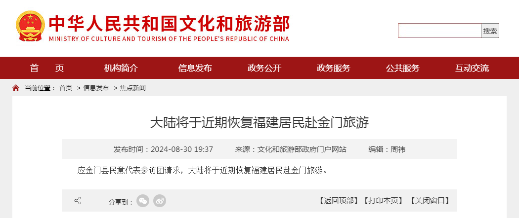 就在昨天9月22日,福建居民赴金门旅游重启,首发团踏上旅程。