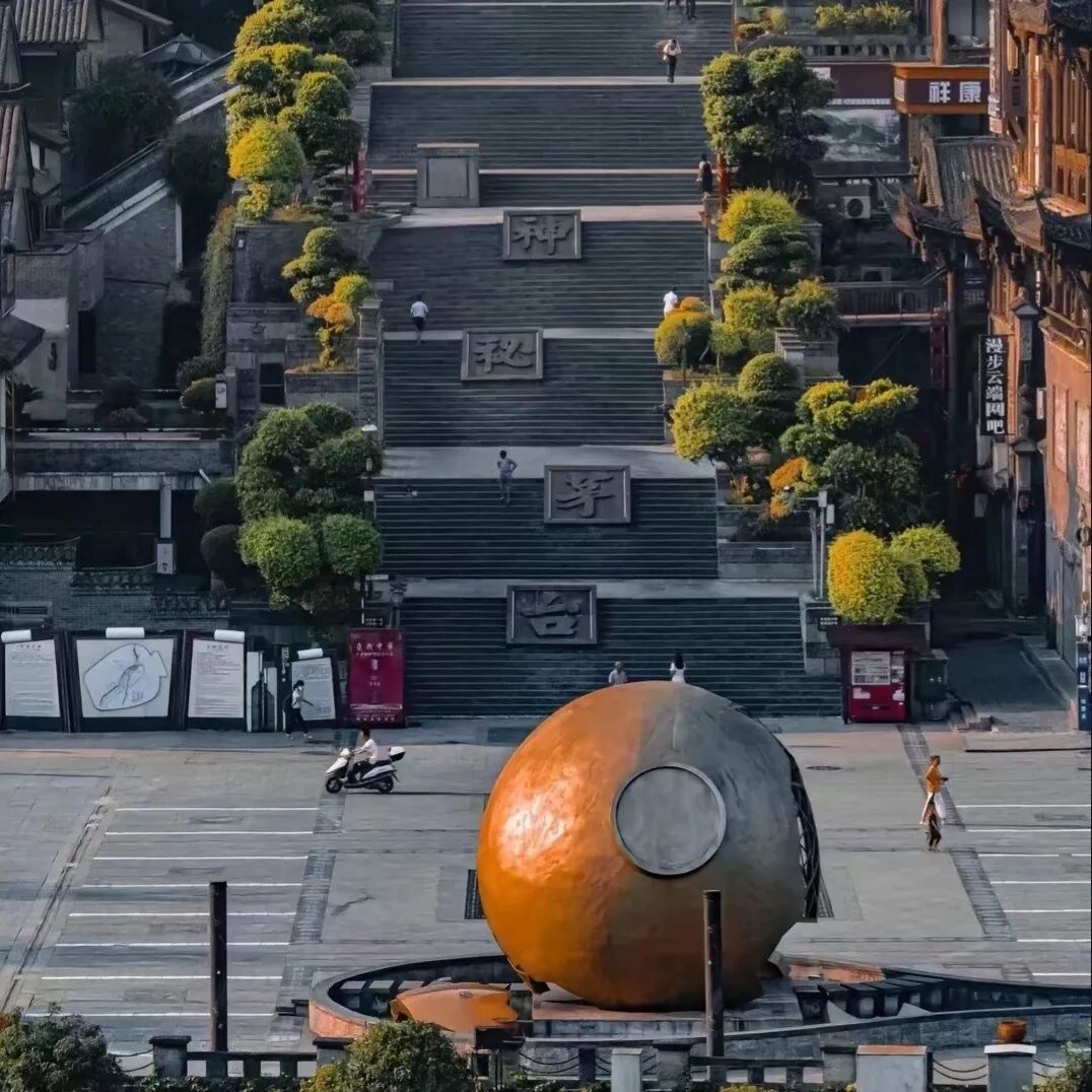 广场的位置在茅台古镇的核心区域,占地3.8万平方米,周围7.5公里范围内都是酱酒的核心产区,中央有一座“摔碎”酒罐雕塑,广场经常举办大型庆典活动,是日常周围居民的休闲场所,也是外地游客必打卡的核心点位。