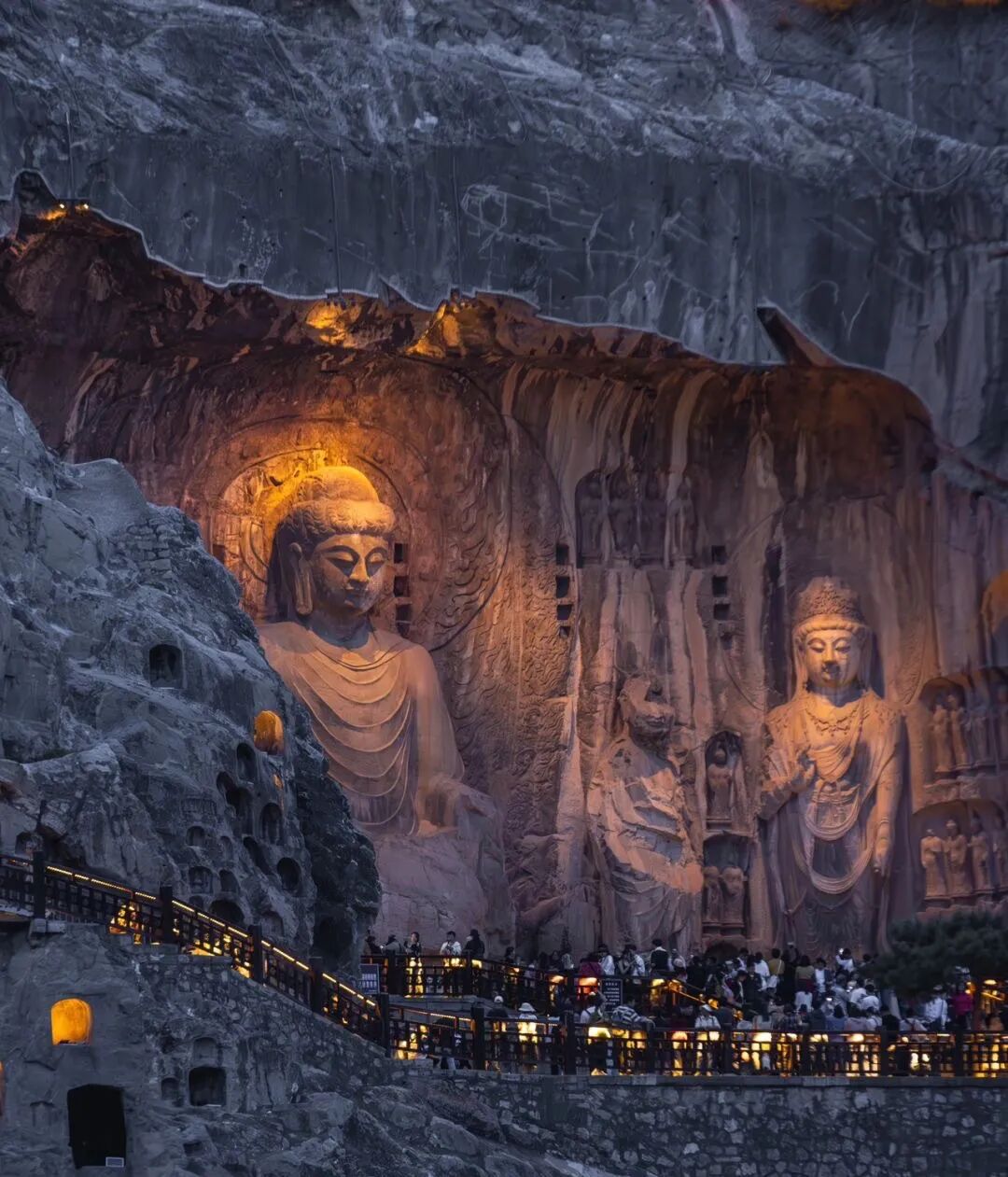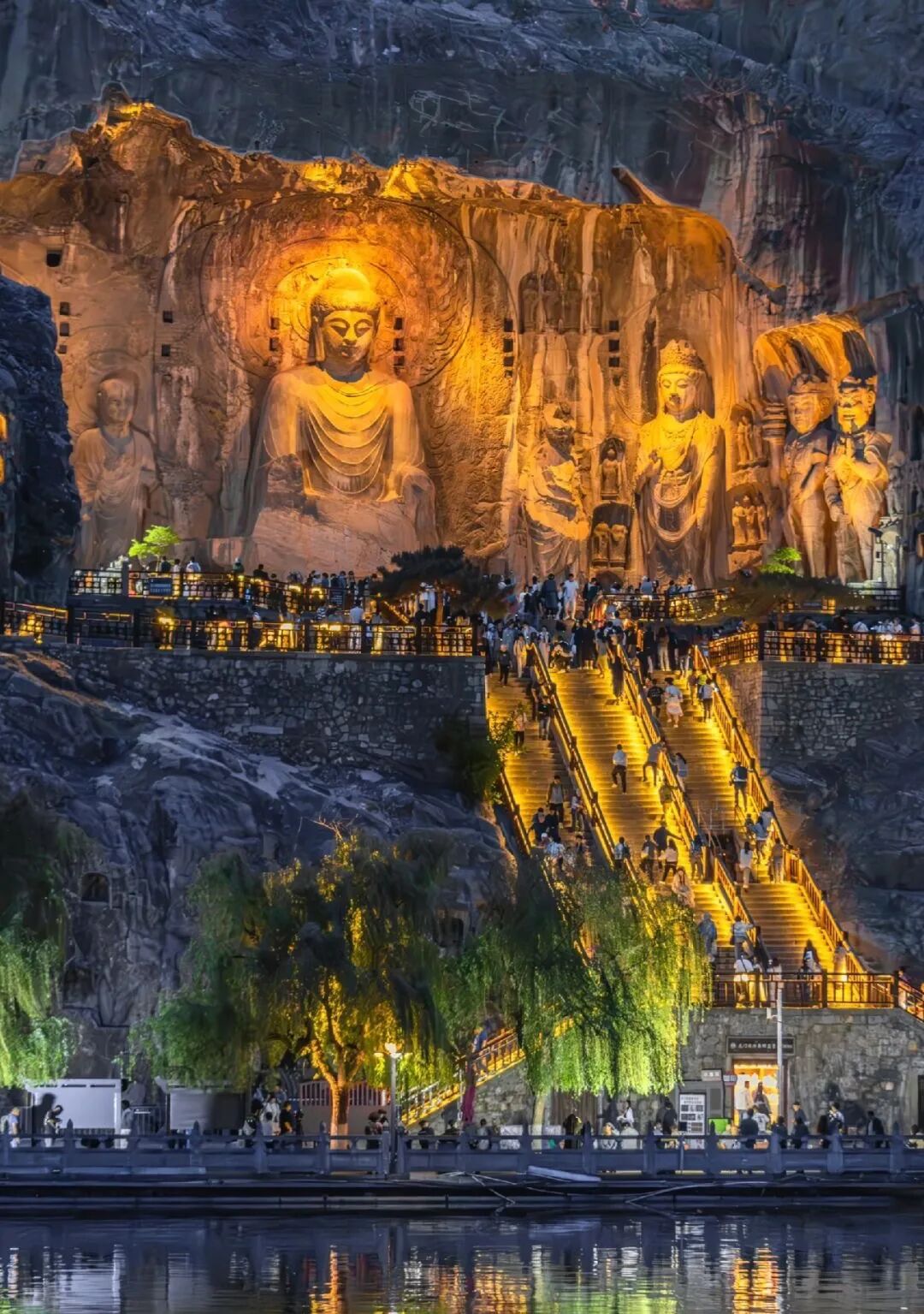 龙门石窟规模之大,气势磅礴,内造像雕刻精湛细腻,内容题材丰富,集辉煌、庄严、优雅于一体,被誉为世界最伟大的古典艺术宝库之一。卢舍那的一眼千年,洛都四郊,山水之胜,龙门首焉,仿佛一场穿越千年的大唐之梦。