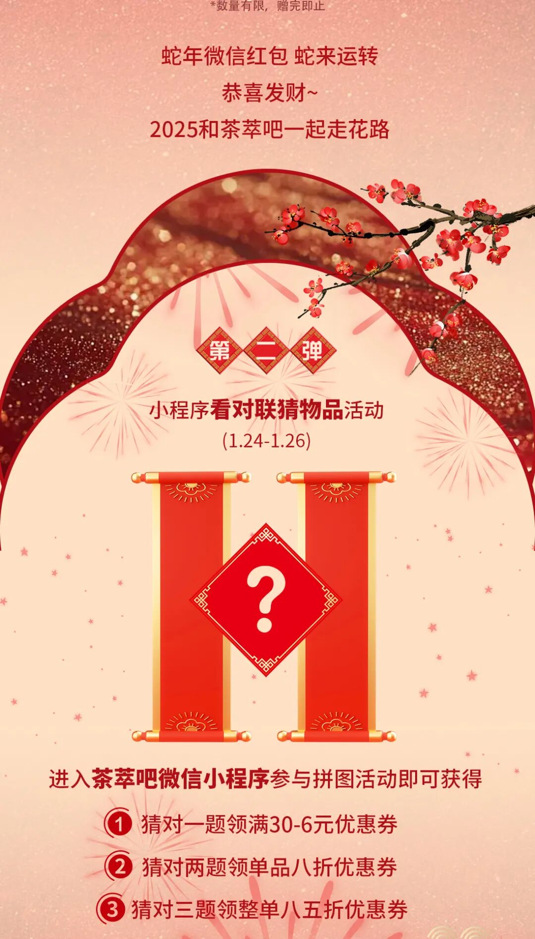 摘要:茶萃吧蛇年限定专属红包封面来啦~我先领一步!手慢无!!
