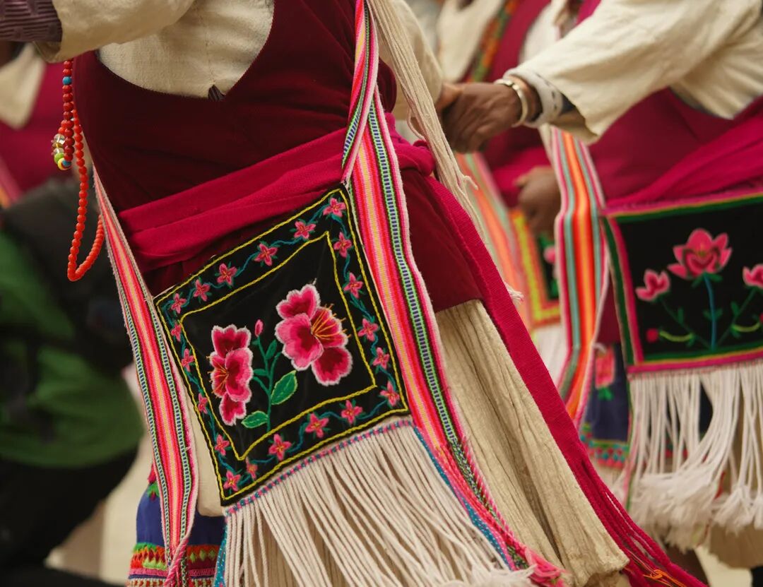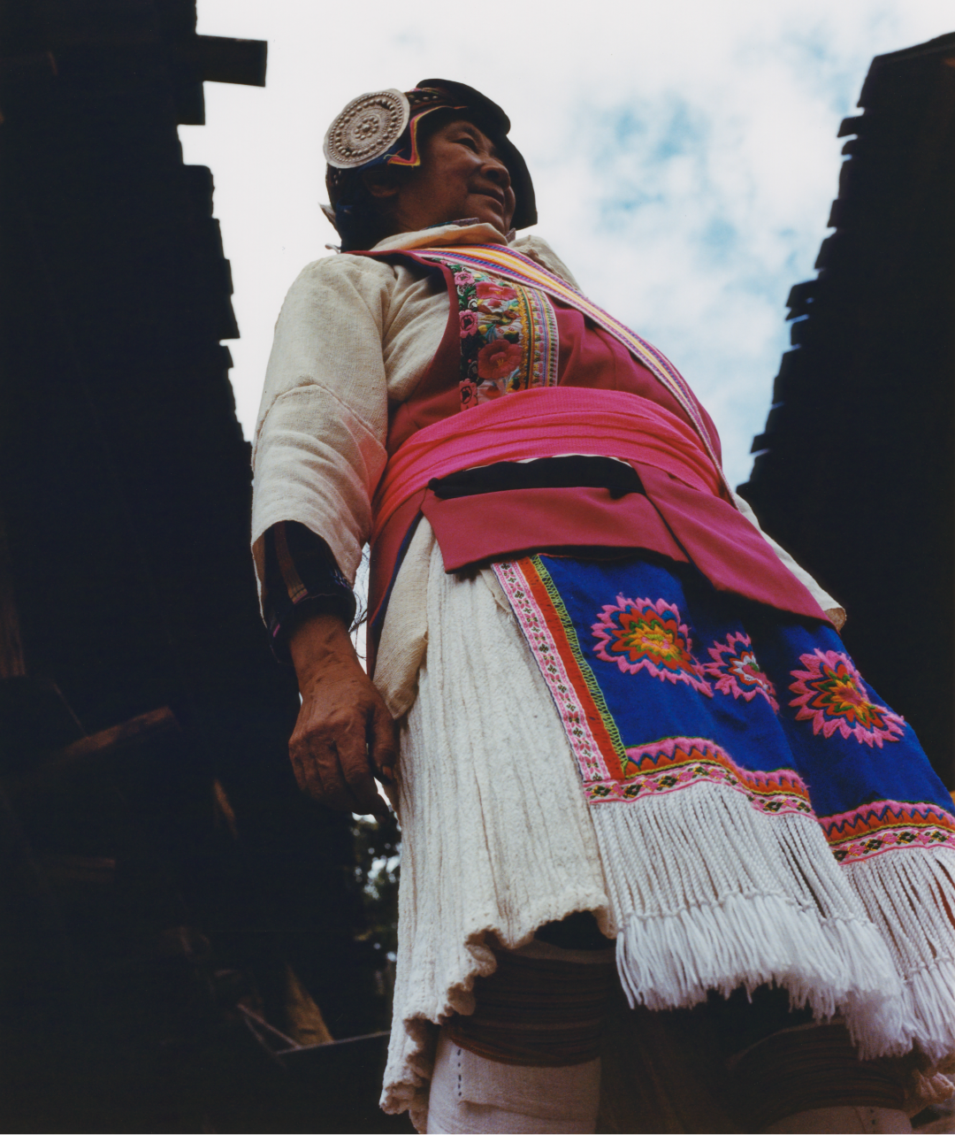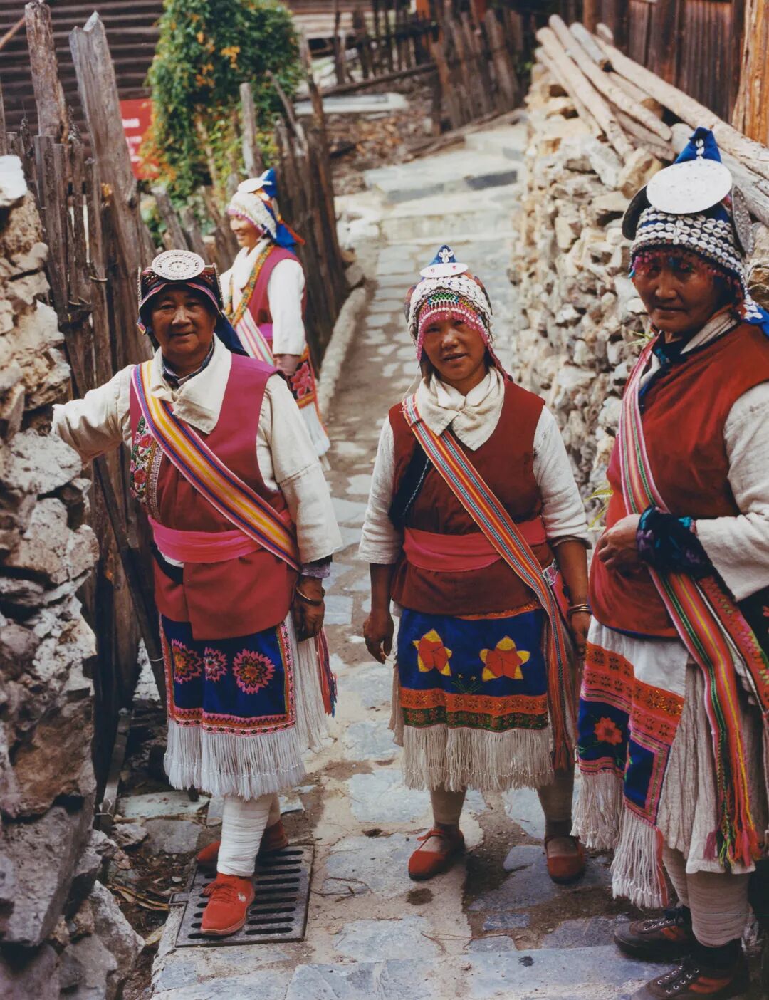 傈僳族是一个被称为“追逐太阳”的民族。传说他们为了追逐更多太阳,通常把房子建在山顶,朝着东方,面向太阳升起的地方。这个口耳相传的浪漫故事,是傈僳族的民族迁徙史留在时间里的印迹。从故事的只言片语中,我们探知傈僳族的底色——那是一种鲜活的生命力,对冒险和远方充满了期待和乐观主义,因为他们相信,穿过山林,终会到达一个有光的地方。傈僳族的迁徙史时间悠久,最早可追随至古代青藏高原上的游牧民族——氐羌族群。据记载,氐羌族群是一个母系氏族社会。早期母系氏族的观念依然渗透在如今傈僳族的生活里。比如,傈僳族没有“男女授受不亲”之说,女人可以和男人们一样平等的参与打猎劳作,这突破了男性创造的主流文化对女性的影响。在有些地方的傈僳族女性,可以以歌为媒,考察、评判和选择意中人,以一种或隐或显的话语权站在幕后。因为战争,他们一直在迁徙至西南横断山区。现如今,傈僳族多定居在云南的傈僳族丽江、迪庆、大理等地。我们原料草药的所在地,云南丽江香格里拉的塔城镇,也是傈僳族的重要聚集地。傈僳族的美感朴素、自然、纯粹,与自然融通,让人印象深刻。尤其是傈僳族女性的服装配饰,区别于素白的男性服装,颜色尤其夺目鲜艳,像是把彩虹穿在身上。这些颜色萃于草木,染于织布,和化学合成染料来说,更有生命力。看着她们依着四季的轮回去种植、采摘染布的原料,又顺应着太阳的东升西落,染布、晾晒织物。整个过程,阳光、空气、水和时间都是重要的元素。似乎在这里,太阳的温度、草药依然在施展着贯穿了几千年的古老魔法。Part2 乌鸦、太阳的使者和草药染魔法