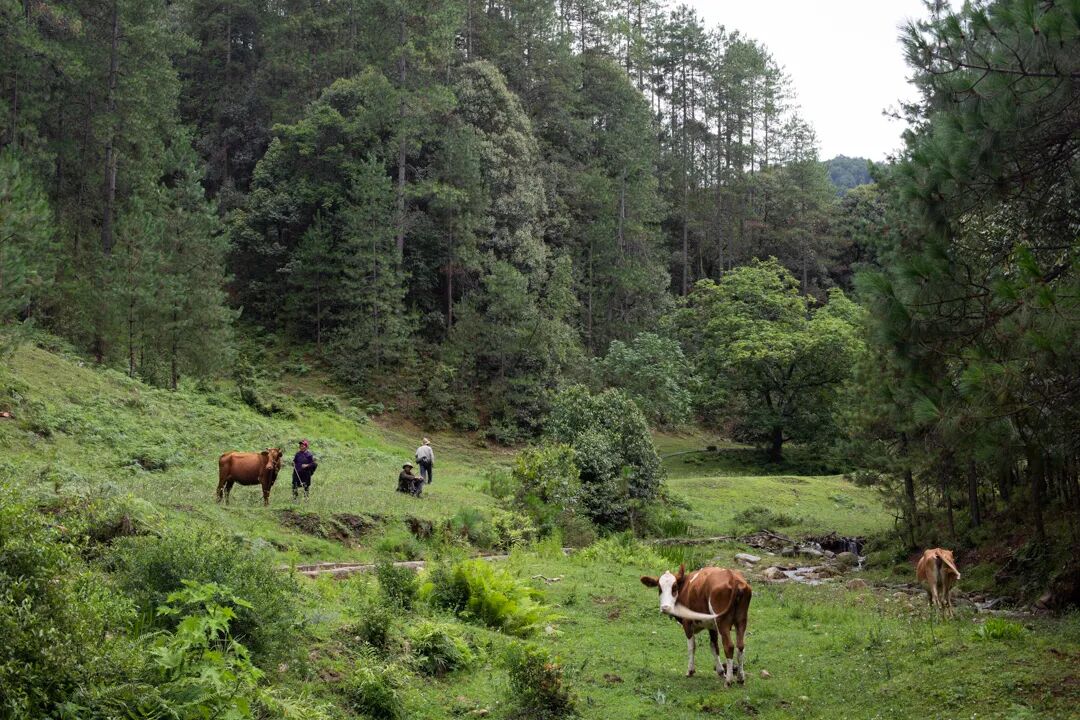 这些以自然为伙伴,从事纺织、染布的傈僳族女人们,会根据这本自然日历——“花鸟历”来安排自己染布草药的过程。他们将一年分为10个节令。她们采集染料的时间,通常约在公历5月(采草养生月)、7、8月(采集月)。这种历法更加依赖于对自然现象的观察,如花开、鸟鸣,因此也被称为“傈僳花鸟历”。花鸟历来源于傈僳族发明的太阳历。他们对自然界的观察非常细致,尤其是对太阳的运行有着深刻的认识。在傈僳族的传统观念中,他们认为太阳是生命之源。它的运行会直接影响着染物原料的生长。新年(阔时节)在傈僳族人心中尤其重要。因为这标志着白昼变长,是万物复苏、太阳回归的开始。傈僳族先民认为此时“人离天最近”,人类的愿望和祭祀活动更容易被天神感知而得其保佑。在这一天,人们会通宵达旦地举办祭天仪式。巧合的是,看似迷信的认识,却被现代天文学验证——冬季归期正是一年中太阳距离地球最近的时段,即“近日点”。不得不叹服傈僳族先民的伟大智慧。如今,傈僳族人依然坚守着“斧斤以时入山林”的传统。在塔城,当地的采茸人会按照“花鸟令”采摘松茸。每到1、2月的春天,松茸的香气开始在塔城的山林间飘荡。它们含有的蛋白质、氨基酸、维生素和矿物质,对修复防晒大有裨益。在塔城,当地的采茸人深知松茸的珍贵,他们采用传统的可持续采集方法。不破坏菌塘,不采集过小的松茸,用木棒而非铁器挖掘,采集后回填土壤,保护着这片土地和松茸的生长环境。Part4 祝我们永远拥有向往太阳的勇气